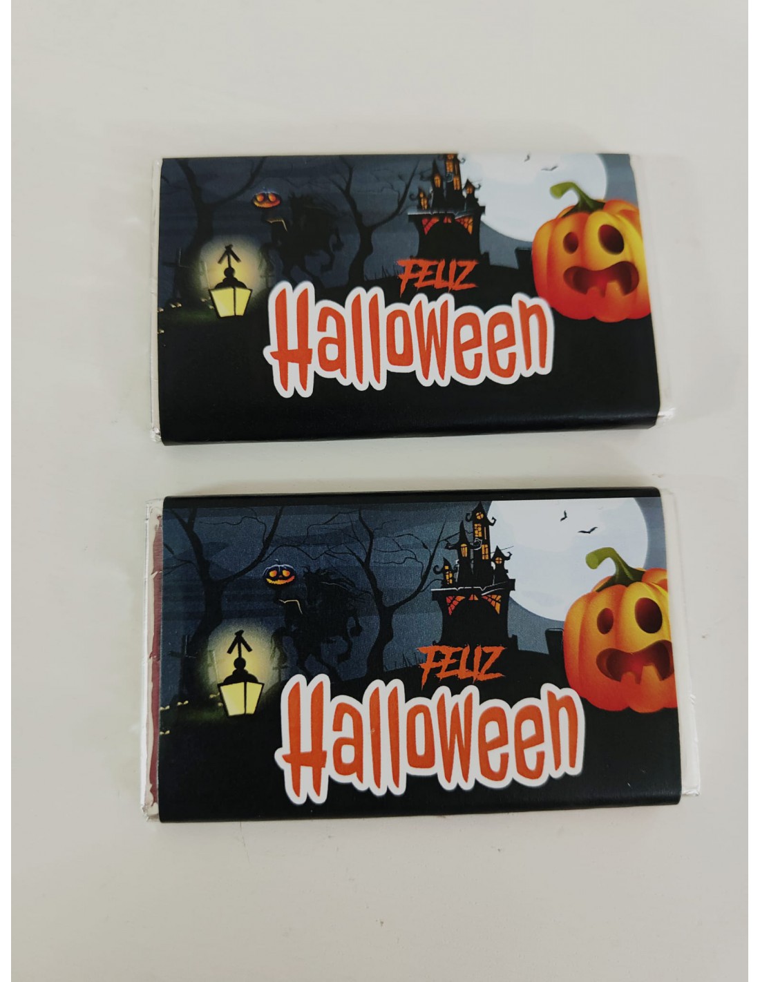La caja contiene dulces como chocolatinas, galletas, gominolas,, marshmallow.... decoradas con motivos de halloween.