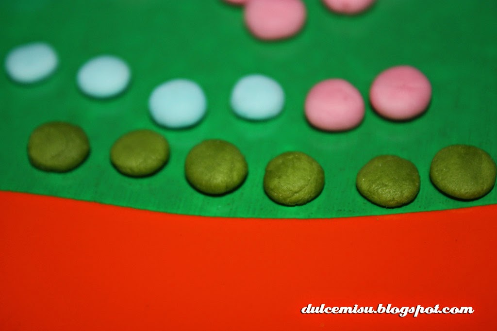 Para los muñecos hice los botones de diferentes colores, las narices, bufandas y orejeras. A algunos les pinté los ojos y boca con rotulador comestible, y a otros se los hice con fondant. Para pintar con rotulador el chocolate debe estar totalmente seco.
