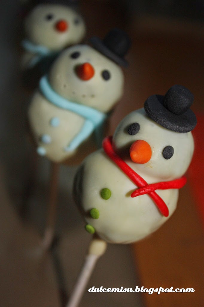 Que tal han ido las fiestas? este es el ultimo post del año, y no podía dejar de enseñaros unos cake pops que me encargó una amiga estos días de atrás. Se trata de unos cake pops con forma de muñecos de nieve y otros con forma de reno.