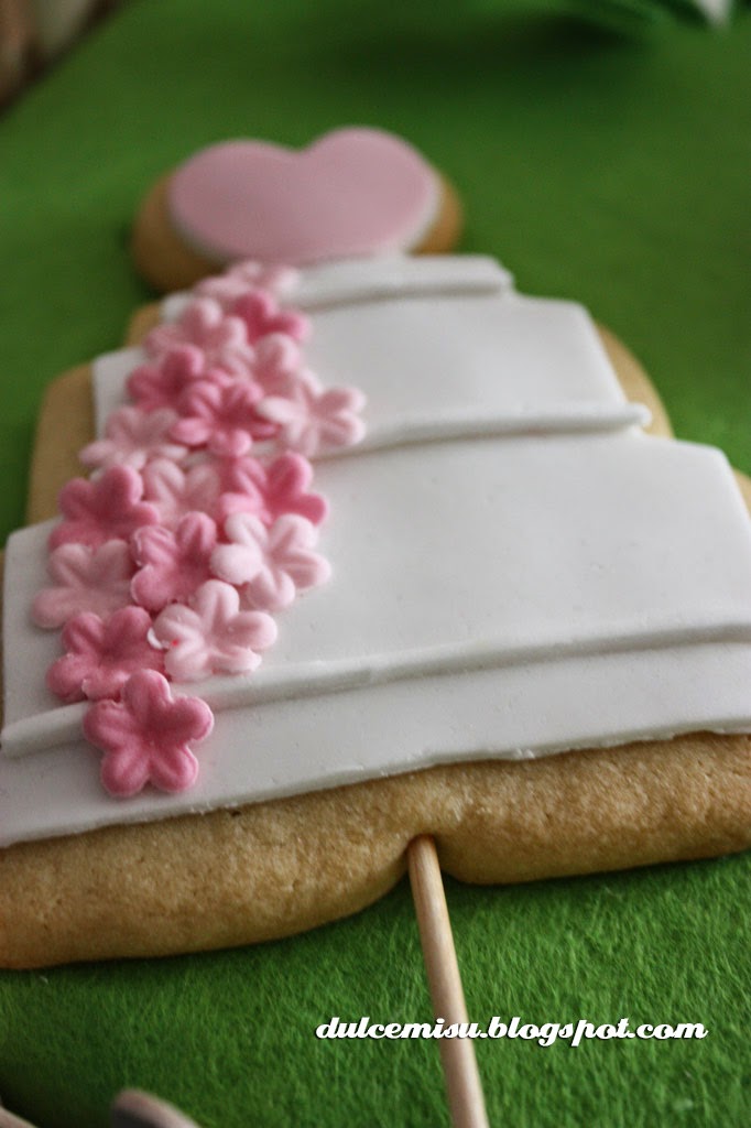 Continuamos con las aves, nuestra pareja de buhos. Las muestras de los cortadores las exhibimos en un cercado que hicimos con palitos de helados, quedó muy gracioso. Están decorados con fondant, y los detalles los hicimos con estecas.