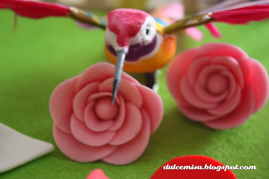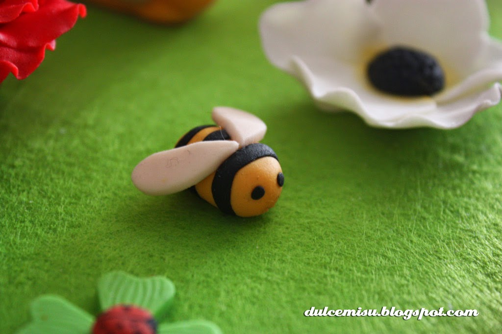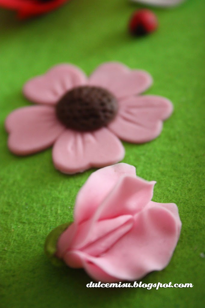 Y este es el resto de decoración que llevamos, preparamos molinillos de fondant, mariposas, flores, avispitas…