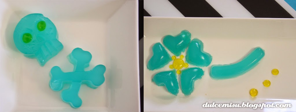 Para desmoldar la gelatina, lo mejor es que despeguéis los bordes del molde con la ayuda de un palillo, así no se romperá la pieza y podréis sacarla completa. Como veis nosotros elegimos unos moldes de lo más variados y originales y quedaron unos resultados muy chulos.