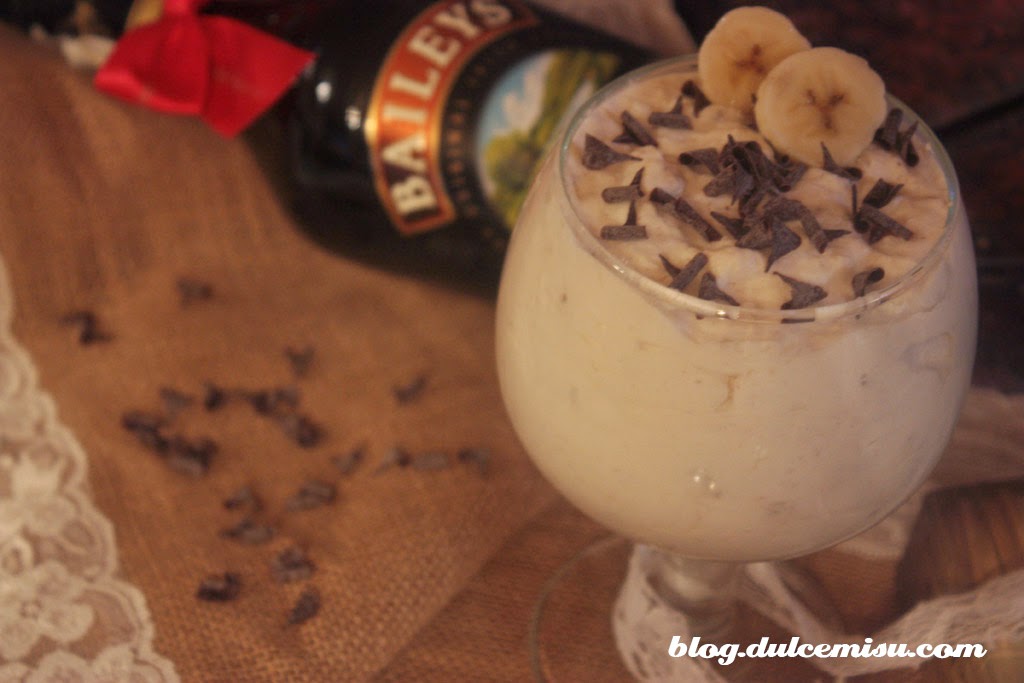 Para decorarla, puse un par de trozitos de platano que me dejé reservados y unas virutas de chocolate. Y este fué el resultado final.