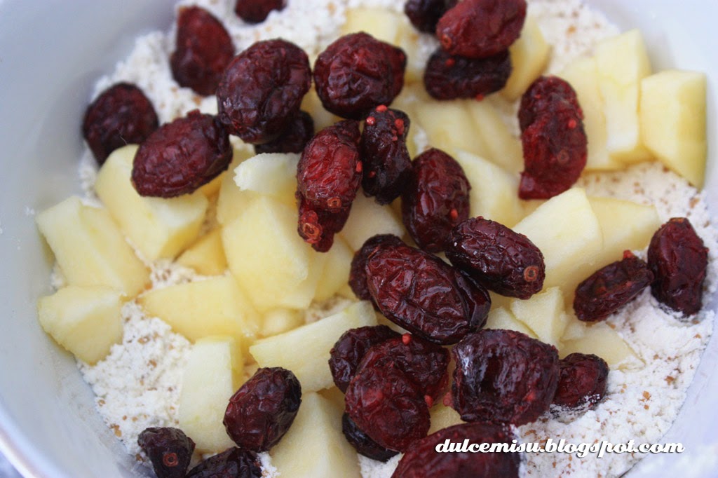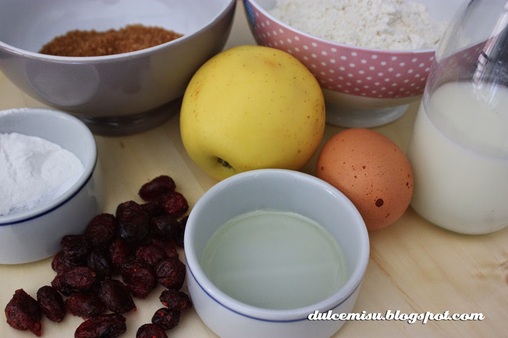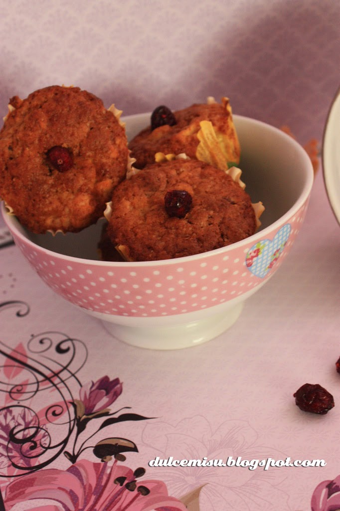 Ya se que en estas fechas todos estamos saturados después de tantas cenas, tantos roscones, turrones… Pero los que somos golosos tenemos que seguir comiendo algo dulce… Así que hoy traigo unos muffins ligeritos, son de manzana y arándanos desecados.
