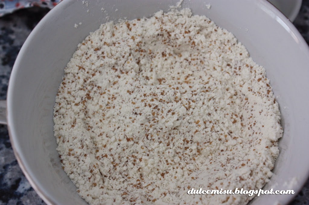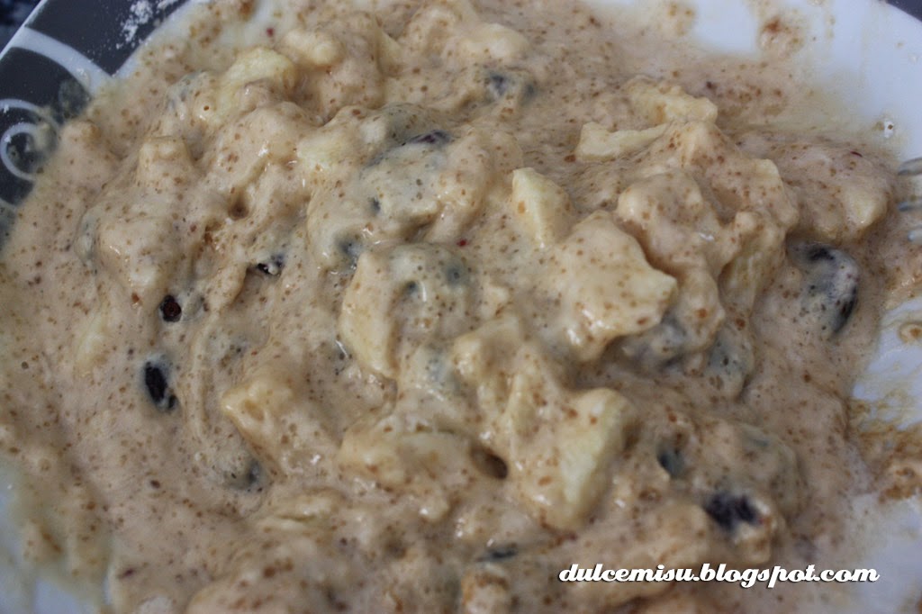 Juntamos los sólidos con los líquidos y mezclamos. Solo hay que mezclar un poco no hay que excederse.