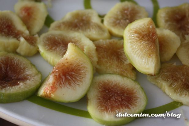 Cortamos los higos en rodajas y los ponemos sobre la nata.
