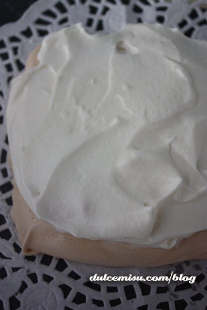 Con las pavlovas ya frías cogemos la capa que vaya a ser la base y le ponemos nata encima.
