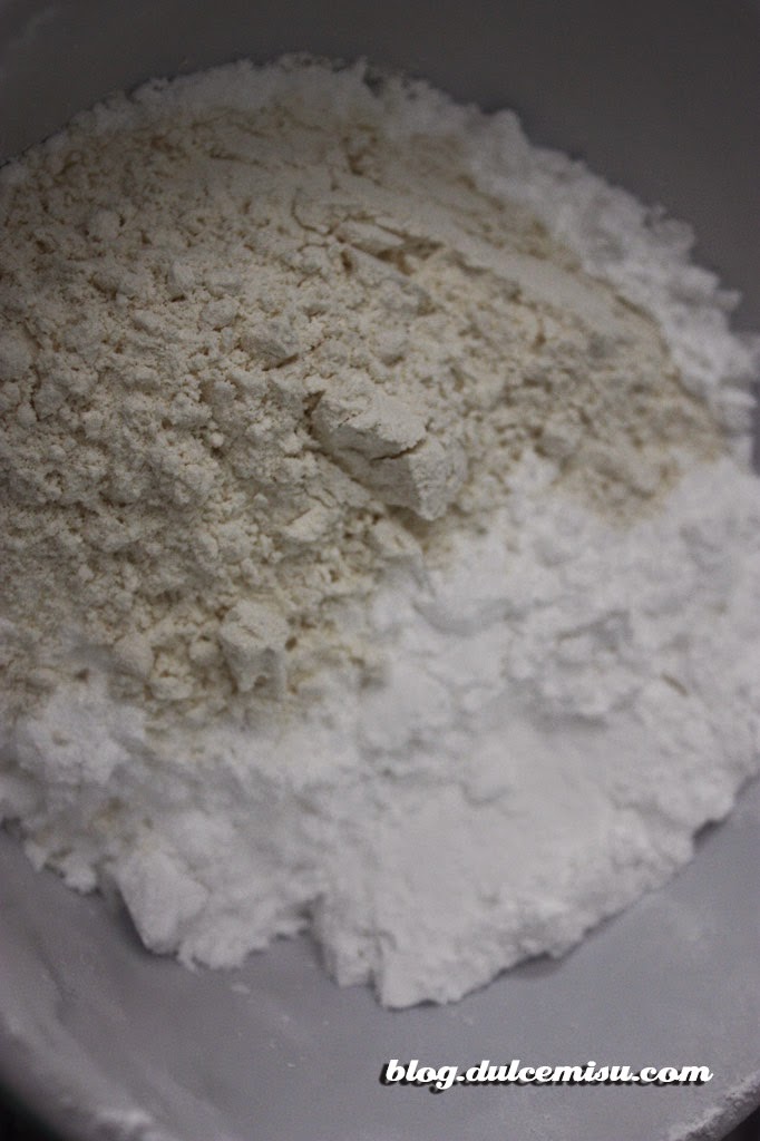 El resto del azúcar lo mezclamos con la harina de maíz y lo vamos incorporando muy poco a poco una vez que la mezcla anterior esté bien brillante.