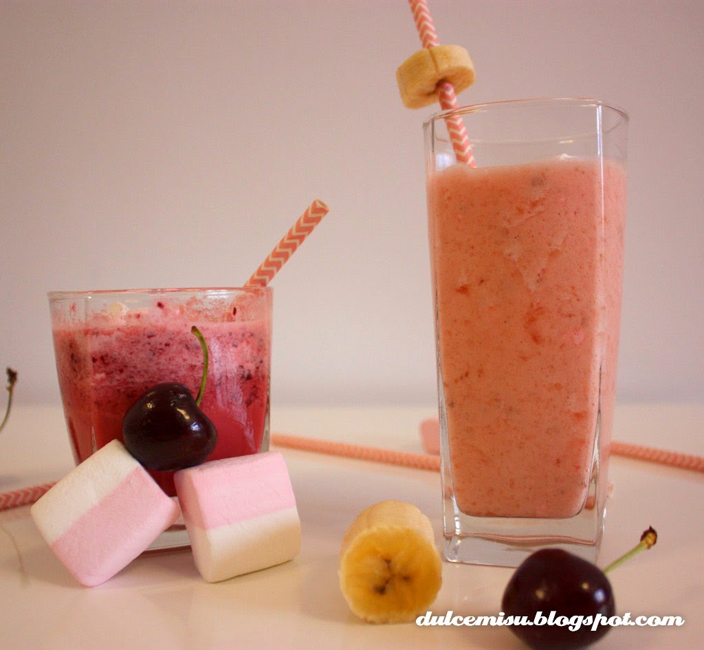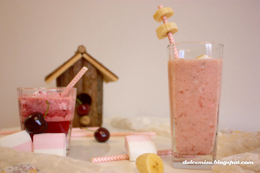 Para que este verano no nos agobie tanto el calor y nos resulte mas fresquito, os traemos dos Smoothies, uno de cerezas con nubes y otro de plátano con nubes, riquísimos, eh?
