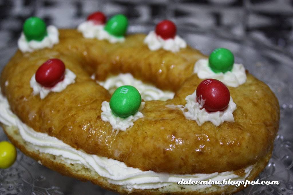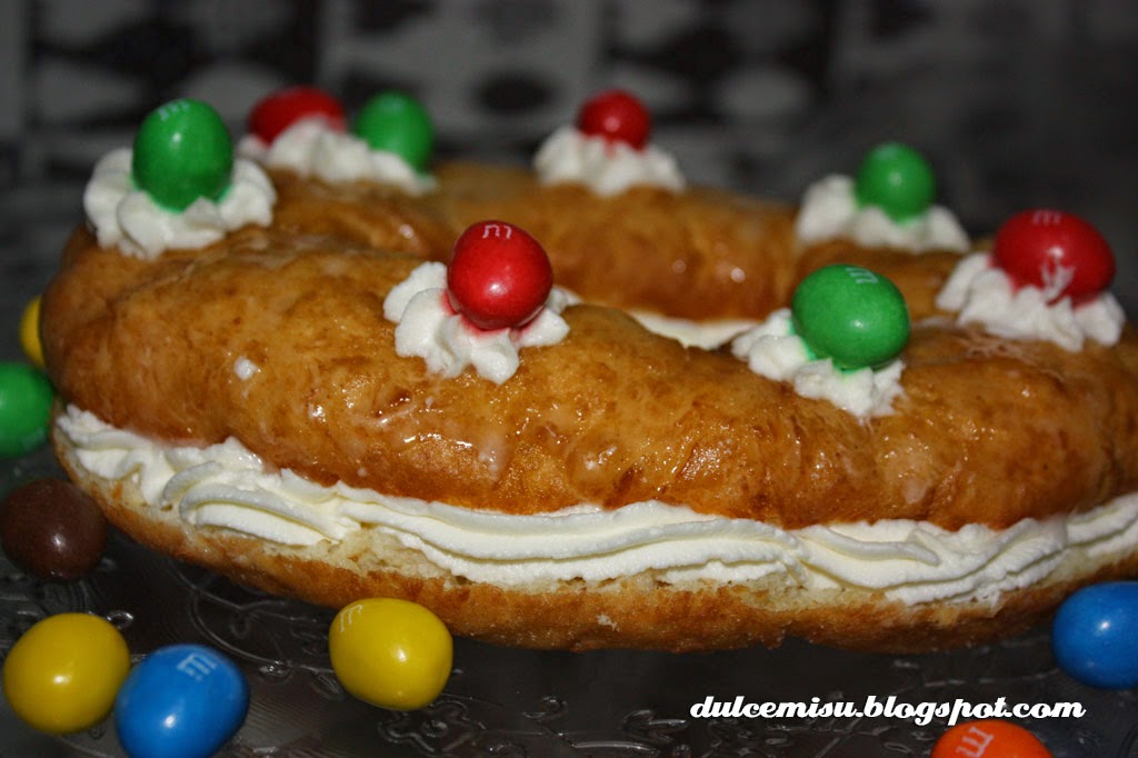 Este es el primer post del año, y coincide con la noche de reyes, y qué es típico de este día? pues el roscón de reyes. Lo que pasa que el roscón que os traigo no es el típico de toda la vida, es un roscón hecho con masa de donuts… ya estoy salivando… Aunque he de confesar que el de esta noche no va a ser el primero que nos comamos, ya han caído varios… Y si, eso que veis son M&M´s… ahora también saliváis vosotros verdad?