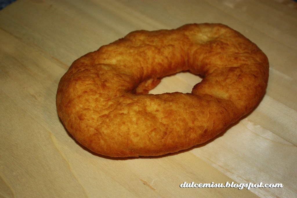 Cuando nuestro roscon haya levado lo suficiente, procedemos a freírlo en abundante aceite de girasol.