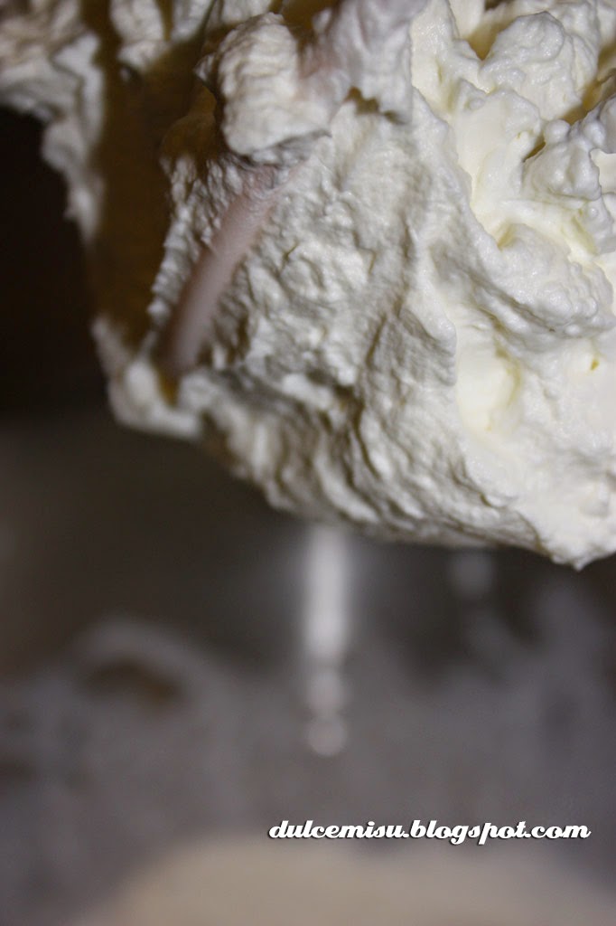 El siguiente paso es montar la nata, yo utilicé un bote de nata para montar, esta riquísima y se tarda muy poquito, recordad que la nata debe estar bien fría.