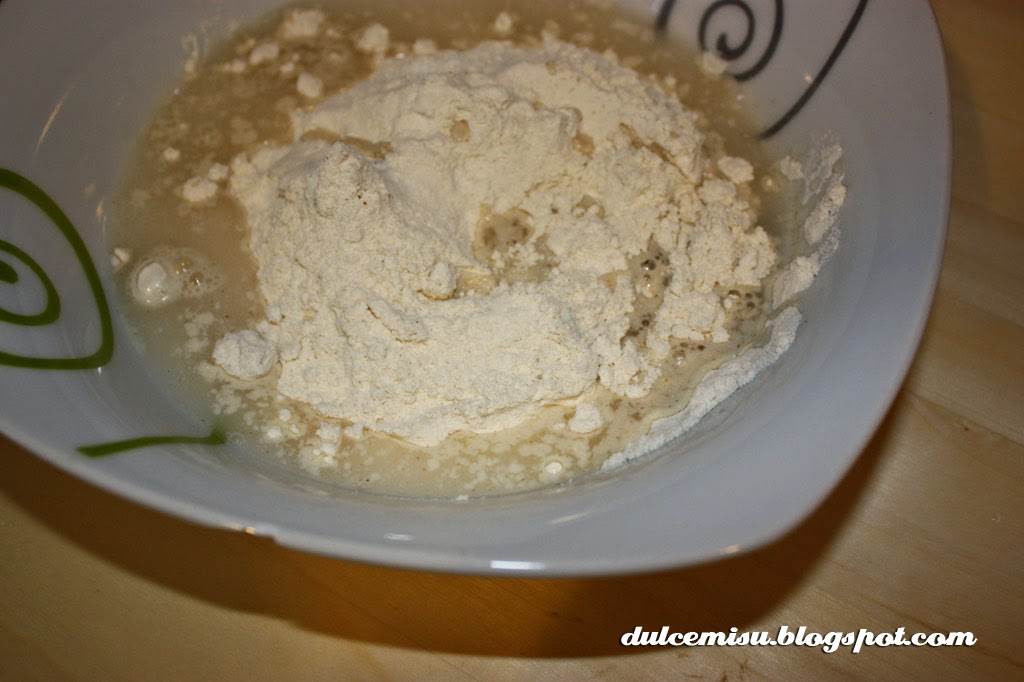 Lo primero que hay que hacer es la masa madre, para ello solo hay que disolver la levadura de panadería en el agua tibia y mezclar con la harina. No hace falta amasar con mucha insistencia, se trata solo de conseguir una masa que pueda hacerse una bola. Cunado la tengamos la dejamos en un bol, la tapamos con un paño y la dejamos levar el doble de su tamaño.