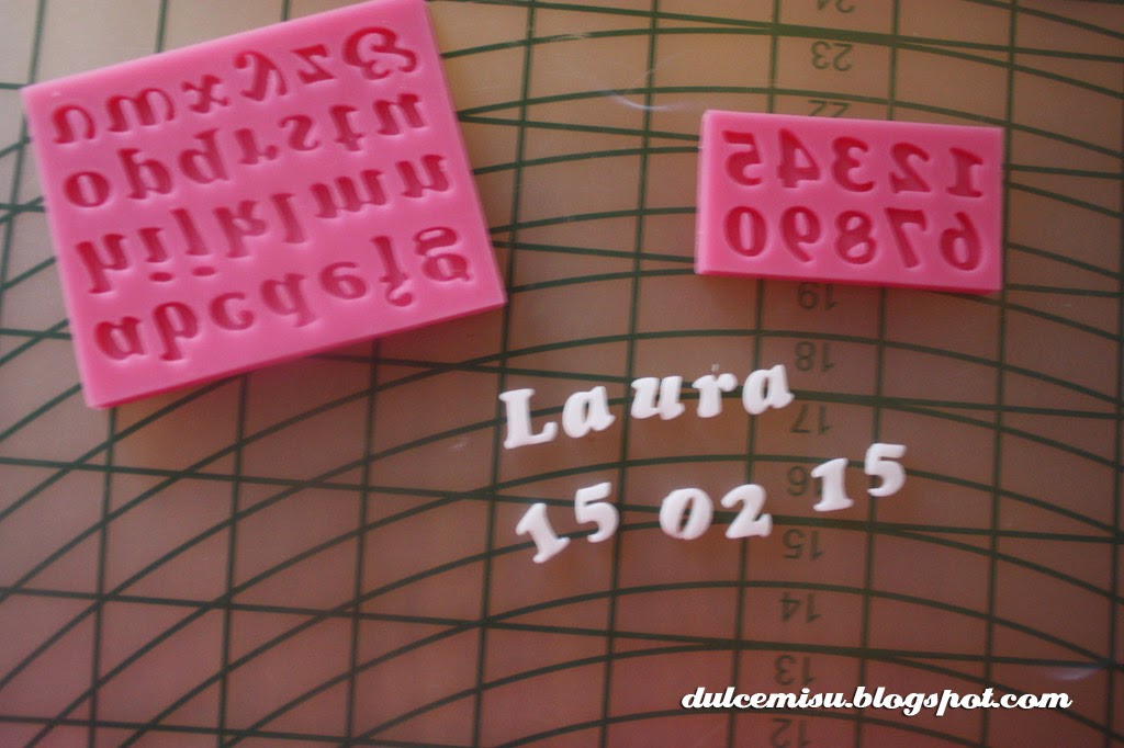 Las letras las hice con un molde de silicona de letras y fondant blanco.
