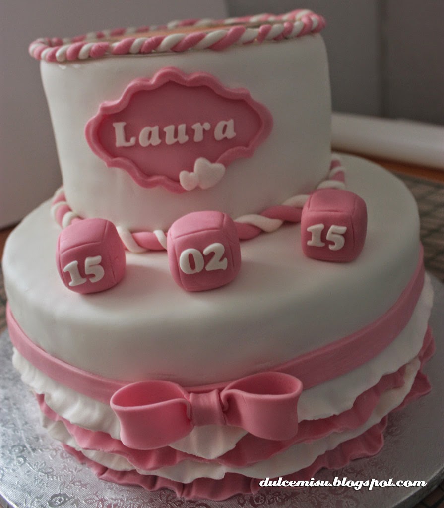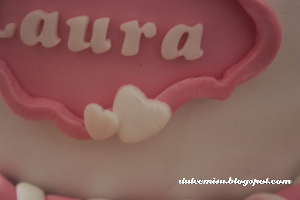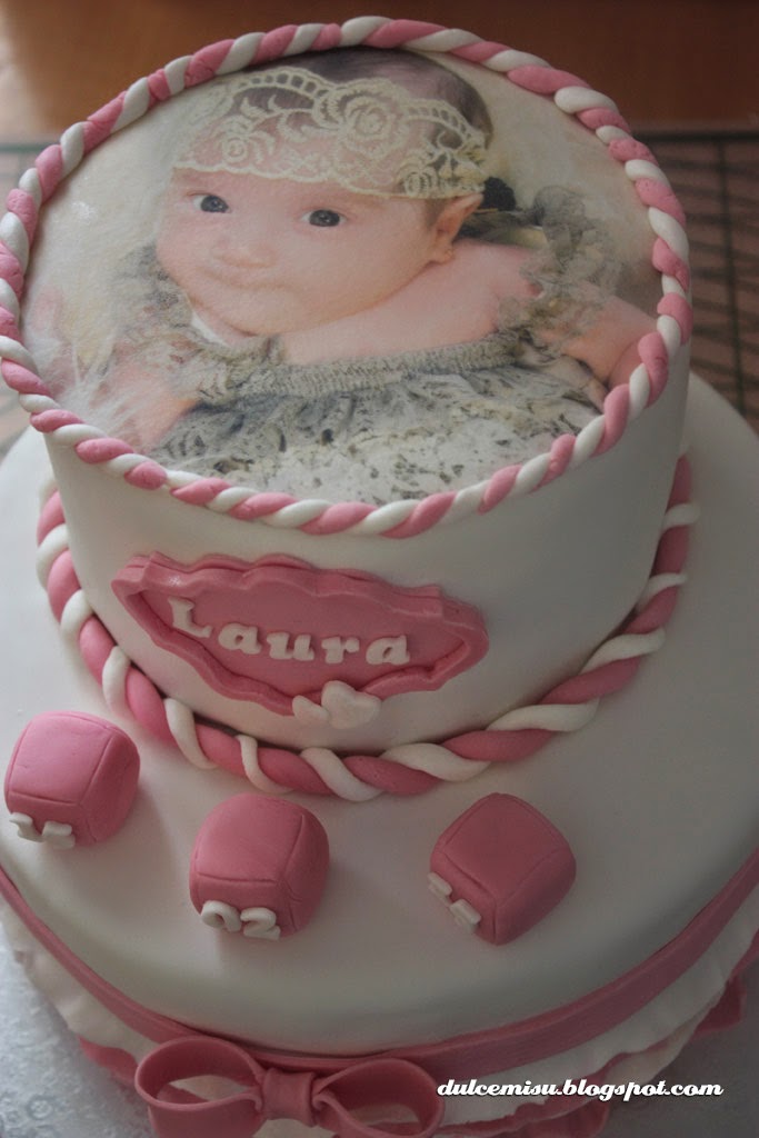Hoy os voy a enseñar la tarta que hice para un día muy especial, el bautizo de la pequeña Laura, la hija de unos amigos. Como requisito indispensable solo me pidieron que llevara la foto de la peque, su nombre, y la fecha. A partir de ahí dejar volar la imaginación…