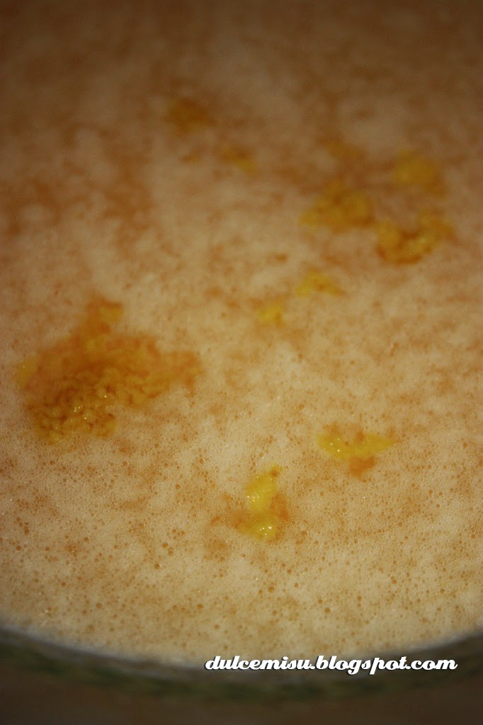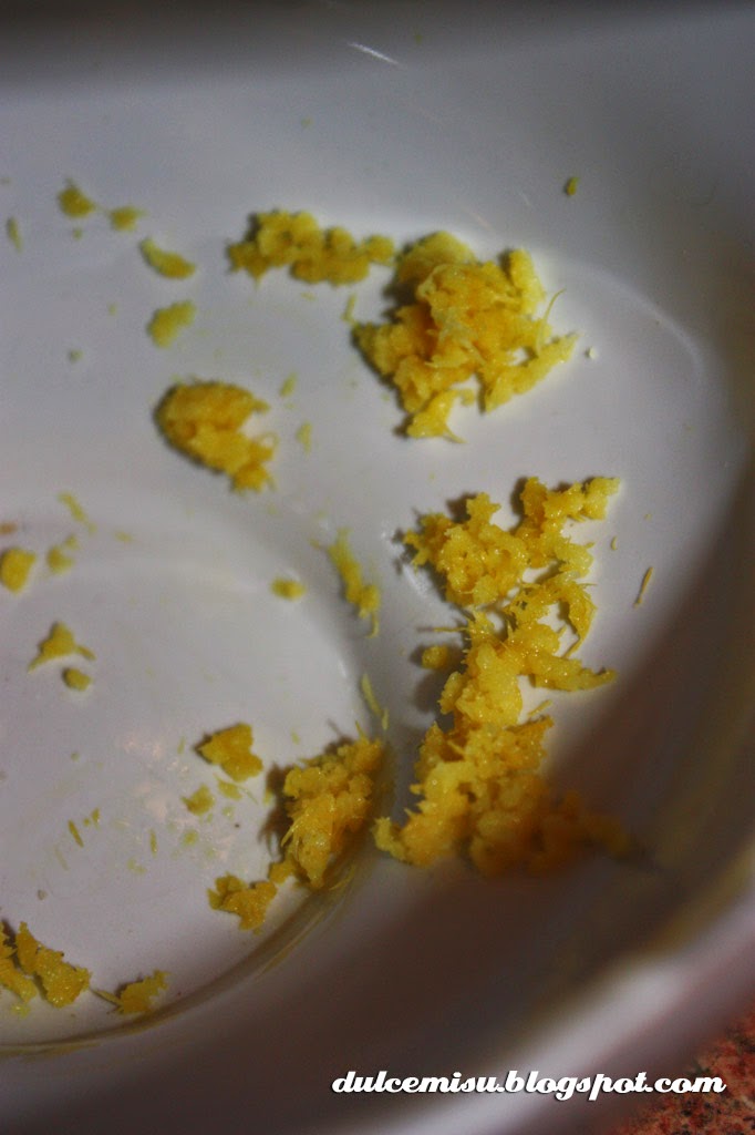 Ahora rallamos el limón, solo la parte amarilla, sin llegar a lo blanco, que entonces amarga, y lo añadimos también y mezclamos. Si queréis también podéis añadir aroma.