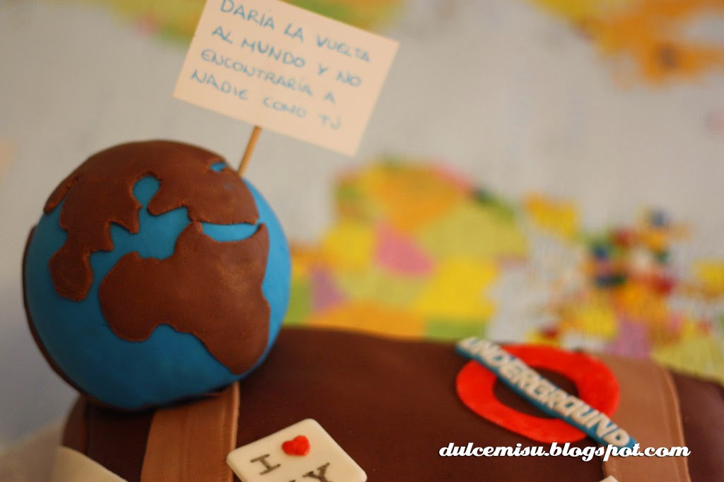 Y para finalizar esta tarta tan viajera puse un cartel sobre la bola que