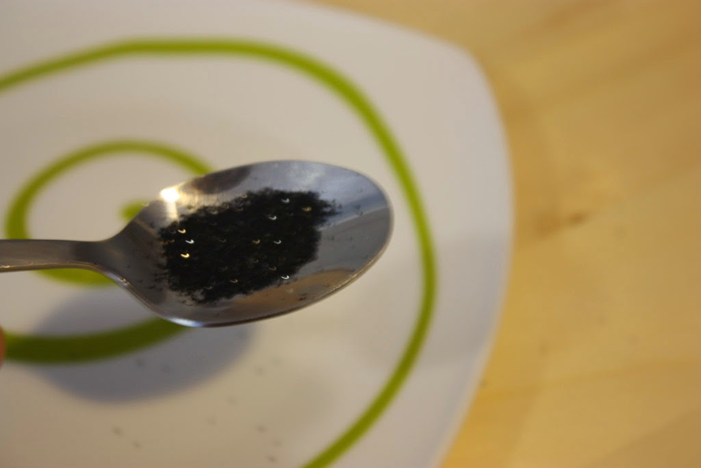 Para cubrirlos echamos purpurina en una cuchara y poco a