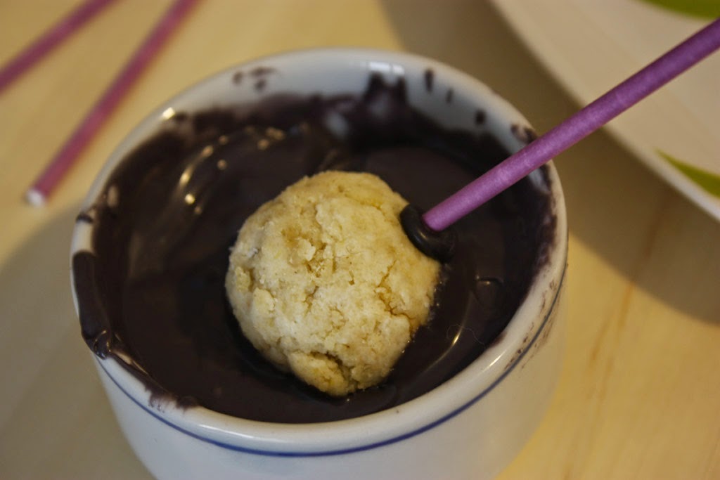 cake pop, en este caso hay que ser rápidos porque queremos cubrirlos con