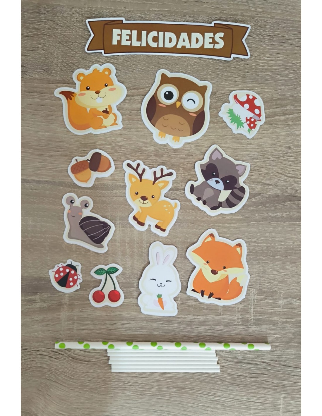 Toppers de Animales del Bosque impresos y cortados en cartulina. Un detalle original y único para decorar tus tartas.
