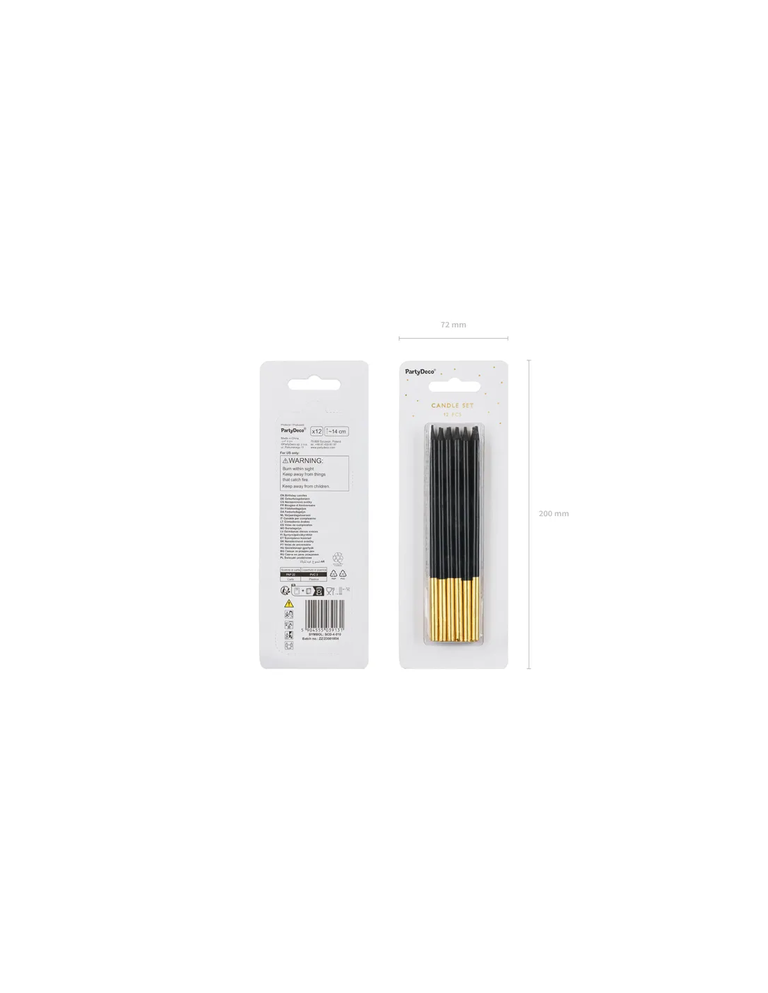 Decora tus tartas de cumpleaños con este set de 12 velas doradas de 14 cm de alto.