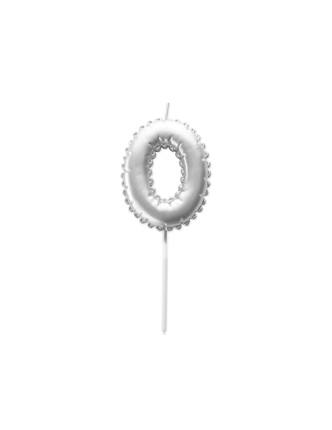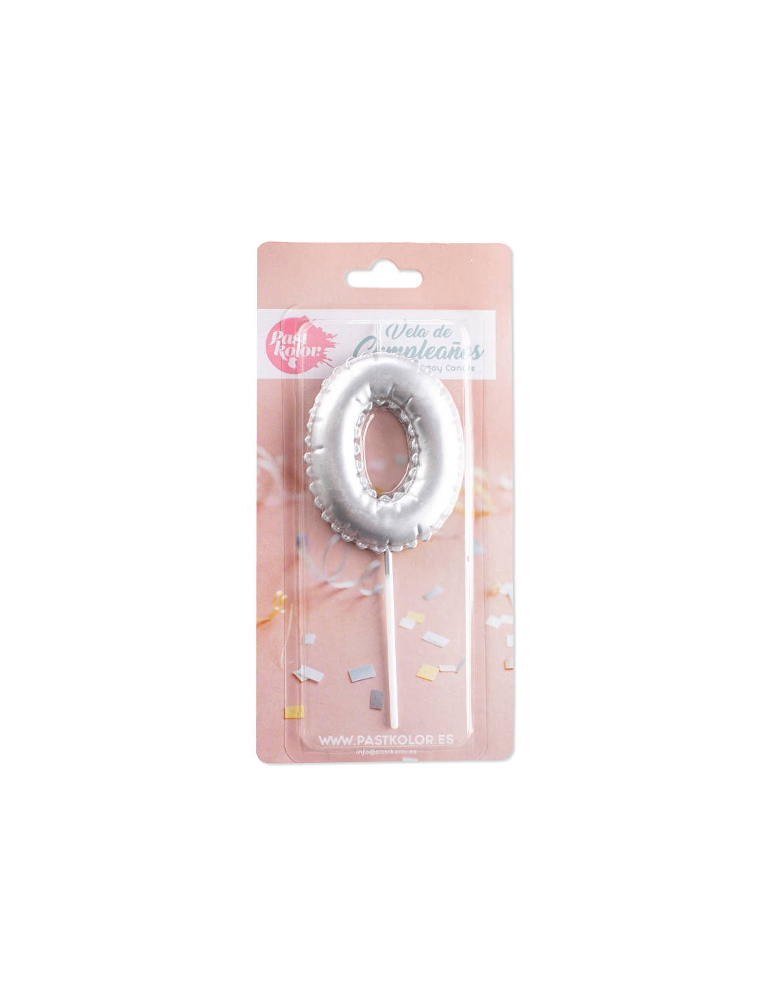Contiene: 1 vela con efecto globo del numero 0 en color plata.