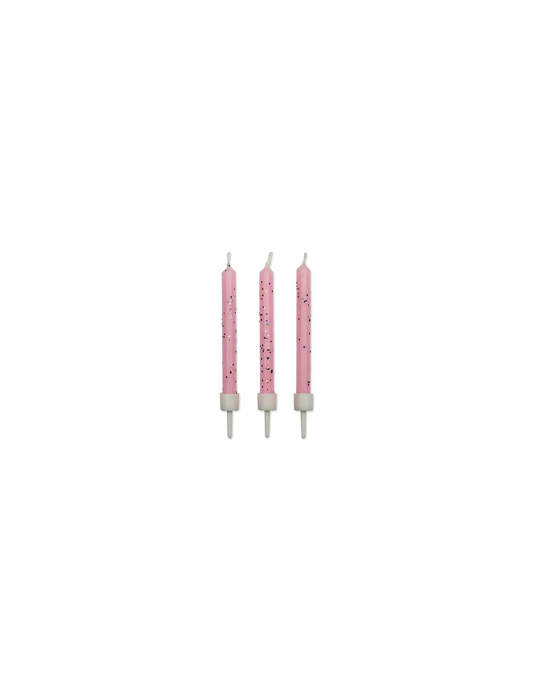 Decora tus tartas de cumpleaños con este set de 10 velas rosas con purpurina PME.