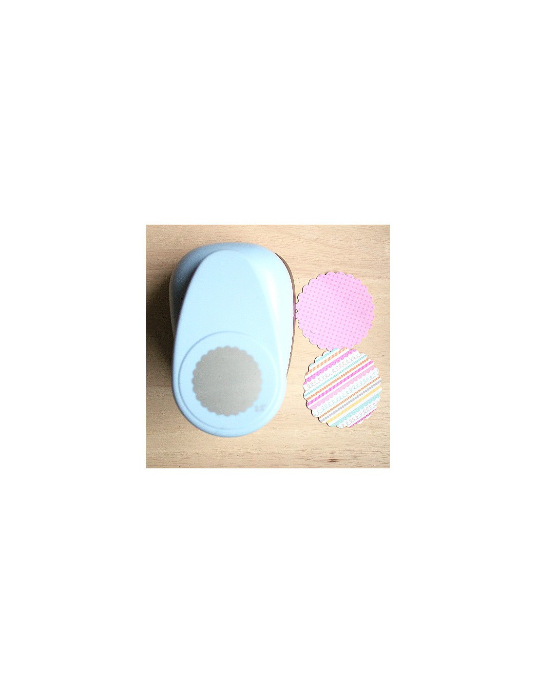 La troqueladora círculo ondas 6,35 cm sirve para cortar papel en forma de círculos con ondas de aproximadamente 6,35 cm de diámetro.