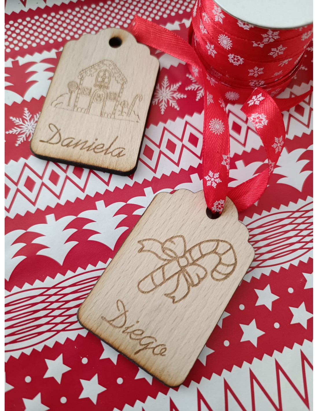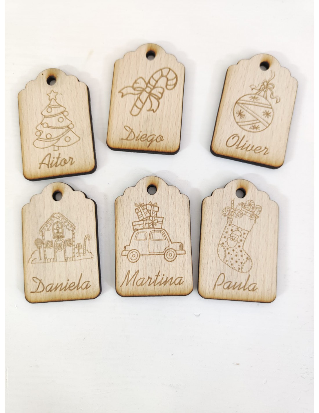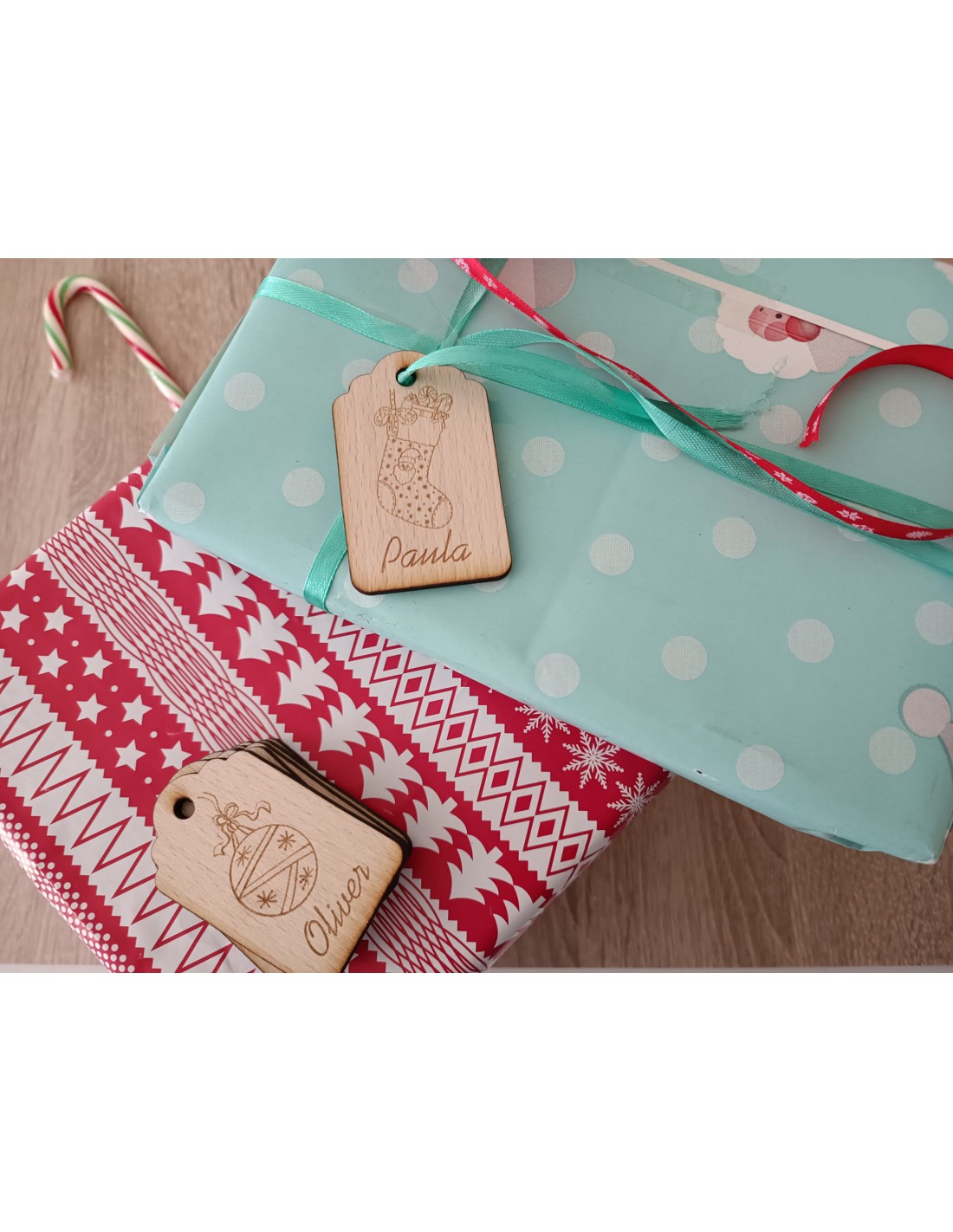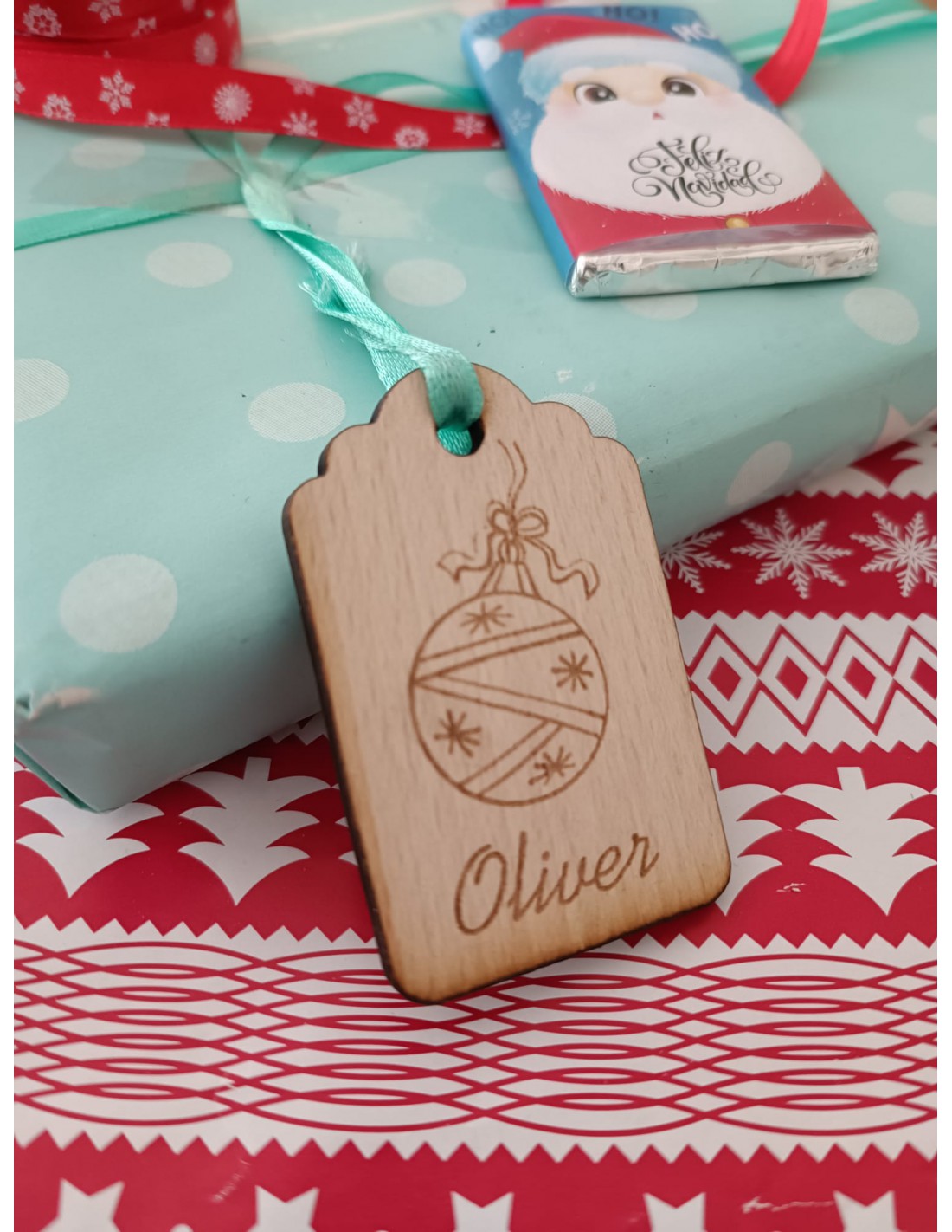 Bola de madera con nombre personalizado y con círculo acrílico de confeti.