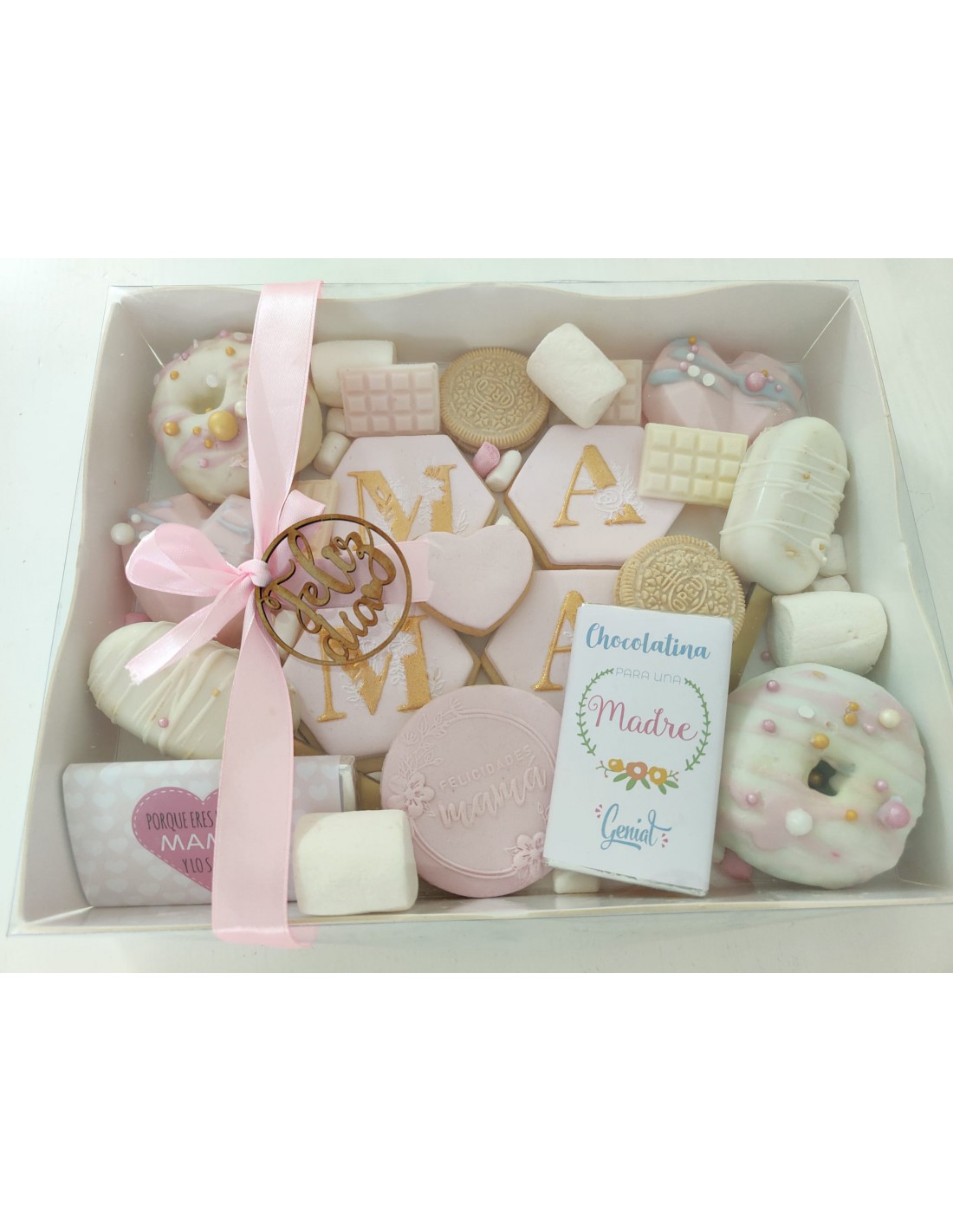 Original caja con dulces variados ideal como regalo para el día de la madre.