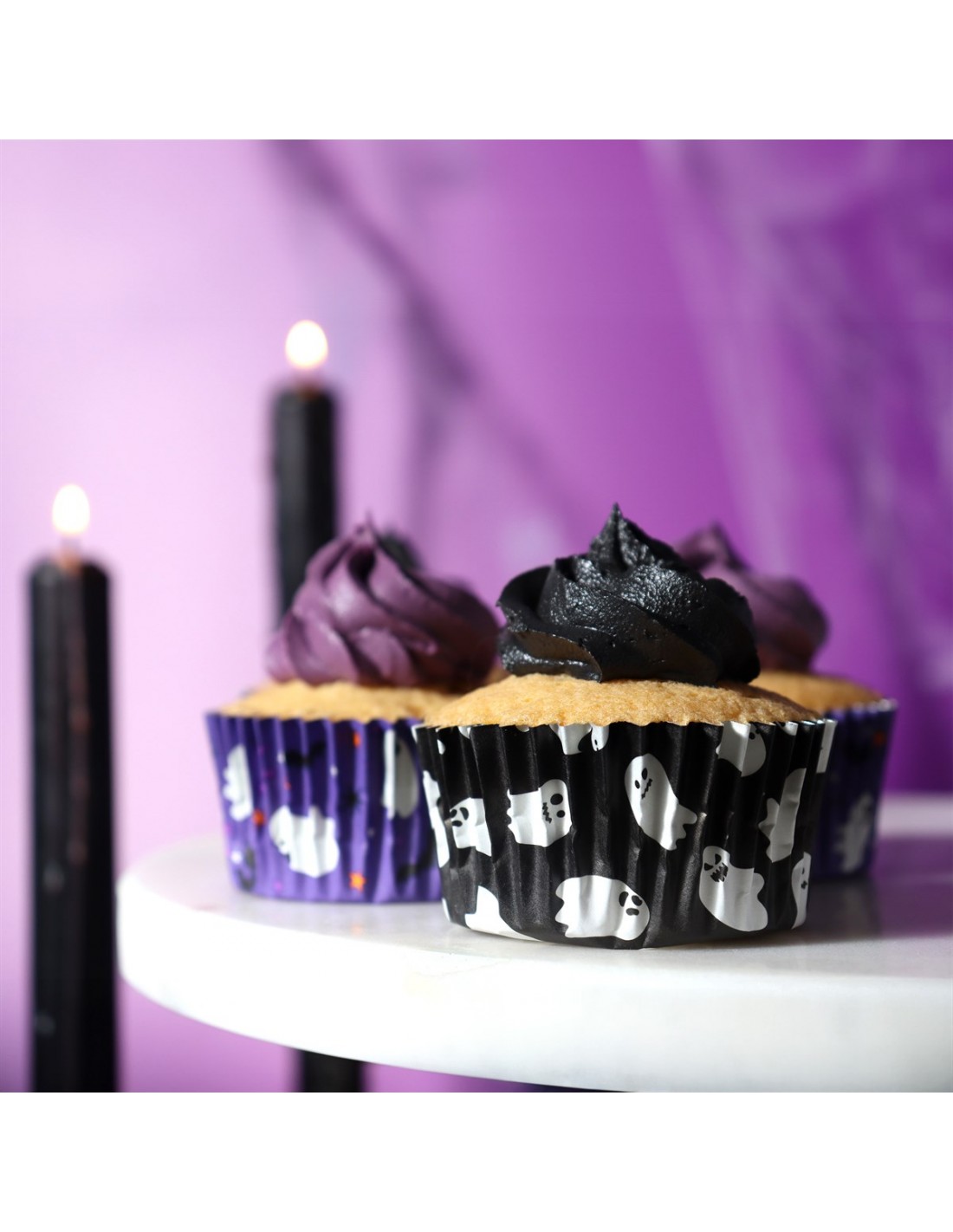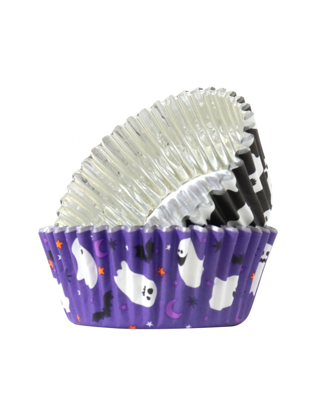 Da a tus cupcakes un toque divertido con estas capsulas Spooky Ghosts para cupcakes metalizadas. Vienen forradas de papel aluminio interiormente para evitar cualquier posible mancha de grasa.