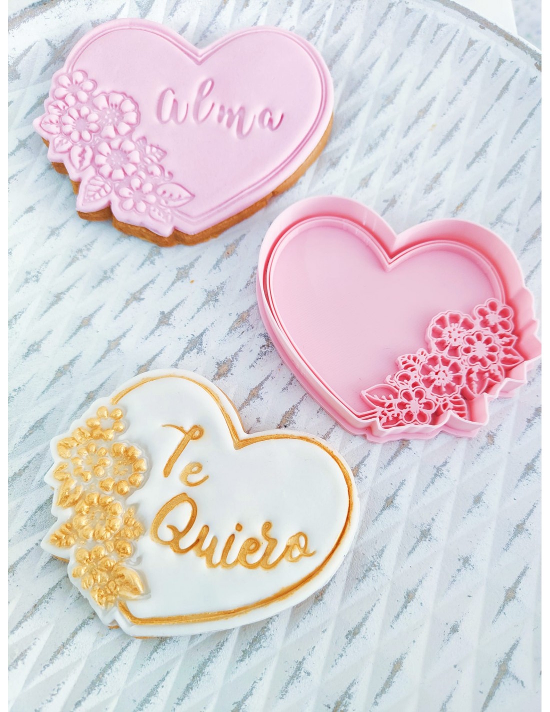 Cortador + marcador Corazón con flores, muy fácil de utilizar y perfecto para cortar o marcar galletas o fondant.