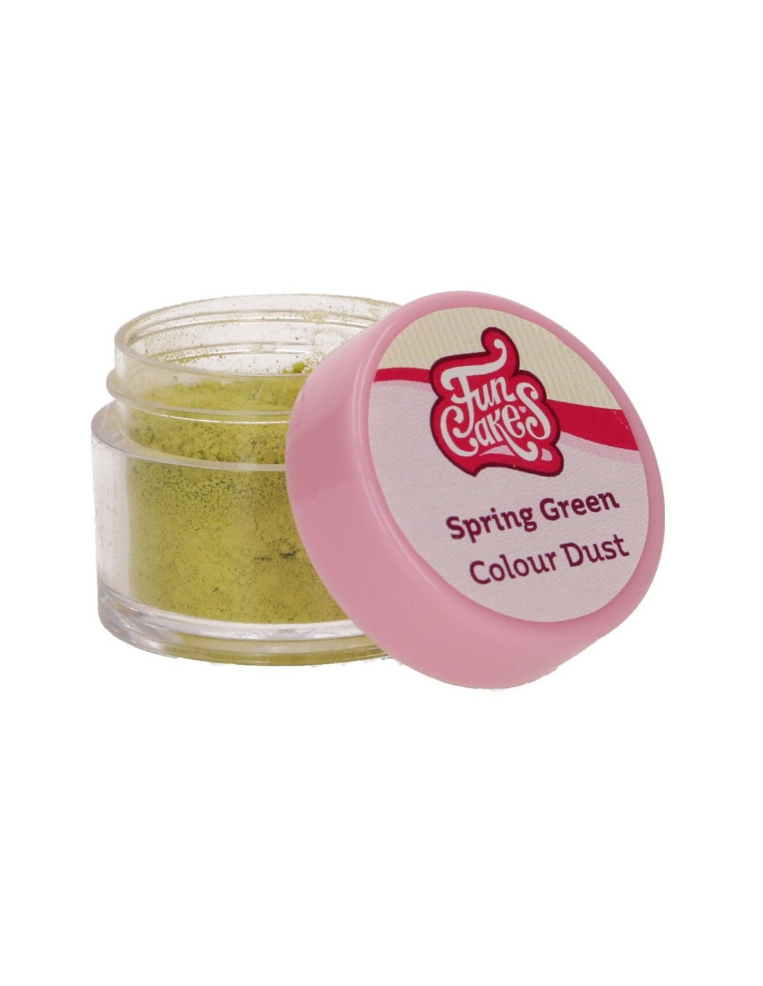 Añade color a tus creacciones! El Colorante en Polvo Comestible Verde Primavera (Spring Green) de FunCakes es un colorante en polvo 100% comestible y es ideal para agregar detalles de color a tus tartas, decoraciones y flores de azúcar. Simplemente pincela un poco de colorante en polvo sobre la tarta, flores de azúcar o decoraciones para darles color o textura. Puedes mezclar los colorantes en polvo de FunCakes para obtener nuevos colores, o colores más profundos o más suaves. También puedes mezclar el colorante en polvo con un poco de alcohol alimenticio (rejuvenator) para crear una pintura comestible y utilizarla en cualquier decoración comestible.