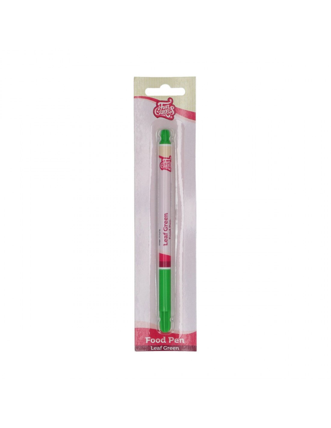 El rotulador alimentario verde de FunCakes es un rotulador de tinta comestible que se puede utilizar para hacer pequeños detalles, textos, líneas y todo lo que se te ocurra sobre superficies como fondant, pasta de goma, mazapan, galletas... La punta del rotulador es flexible y muy útil para realizar líneas delgadas y gruesas. La tinta seca rápidamente. También es ideal para hacer ojos, bocas y cualquier otro detalle sobre figuras modeladas así como para añadir detalles a flores en las hojas y pétalos.
