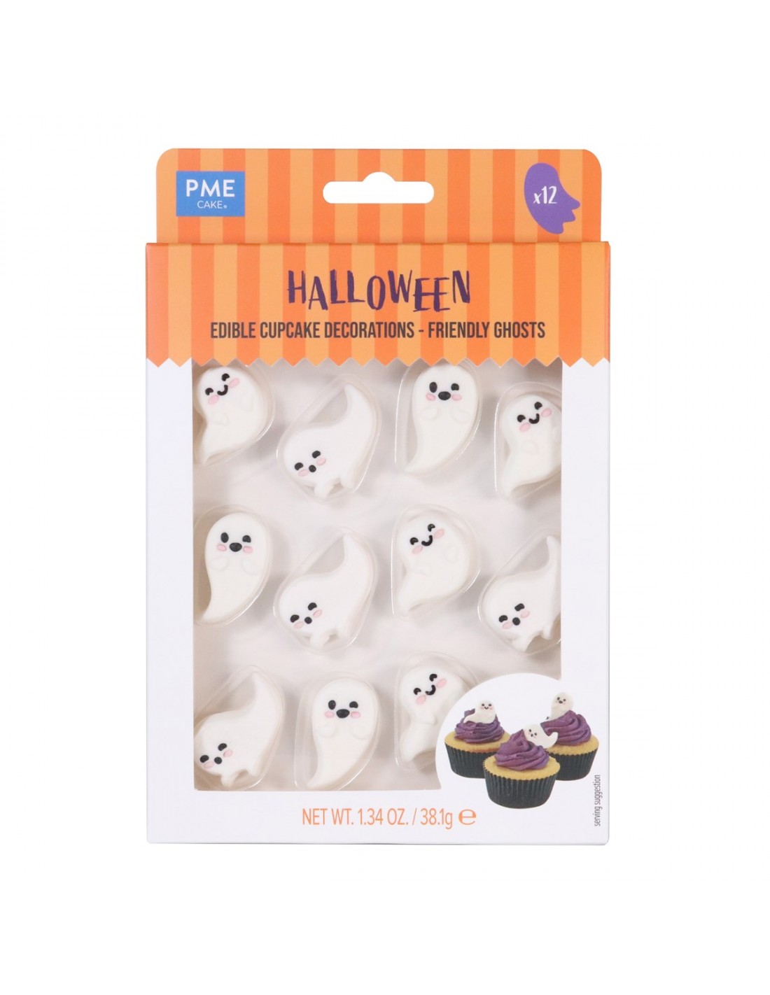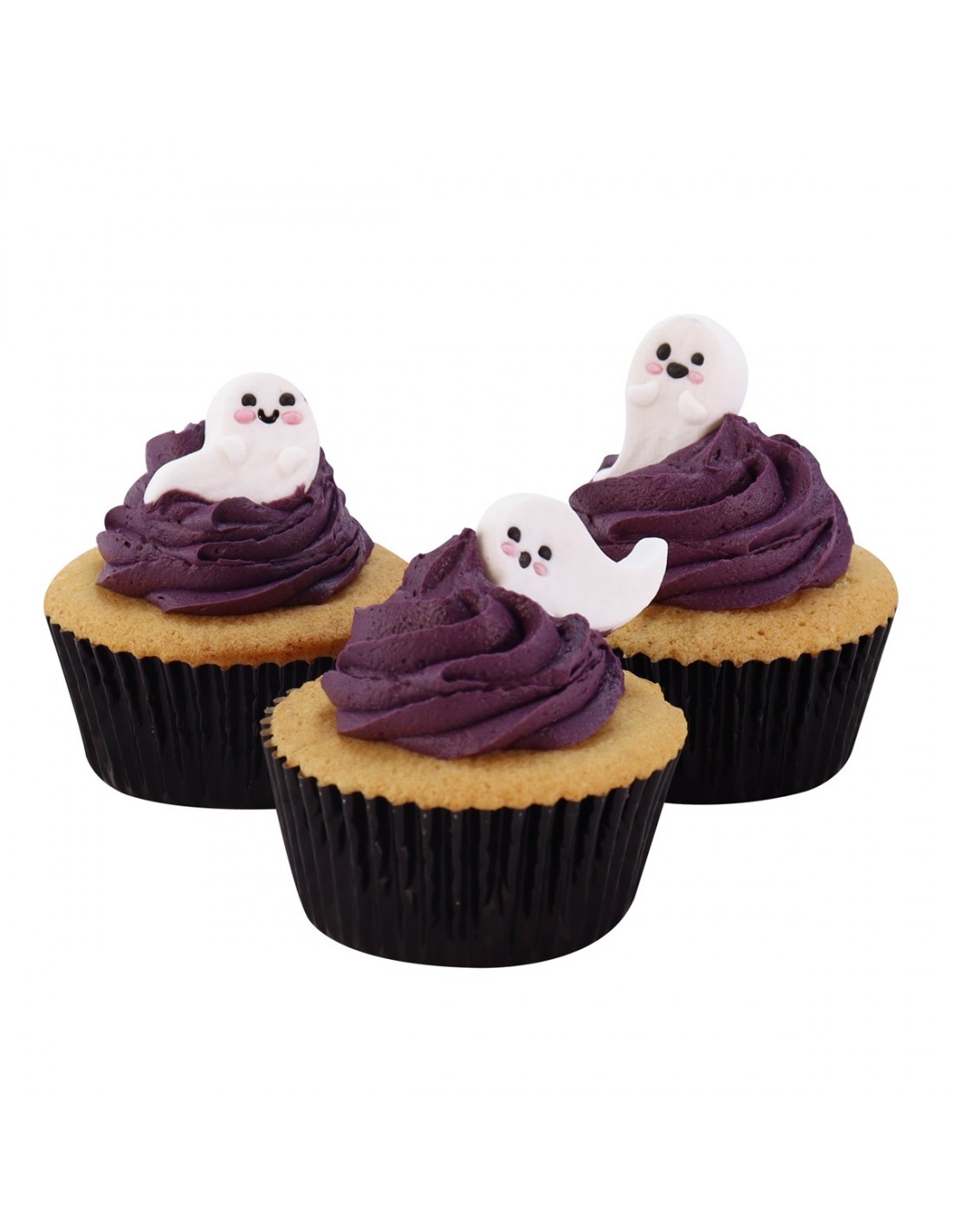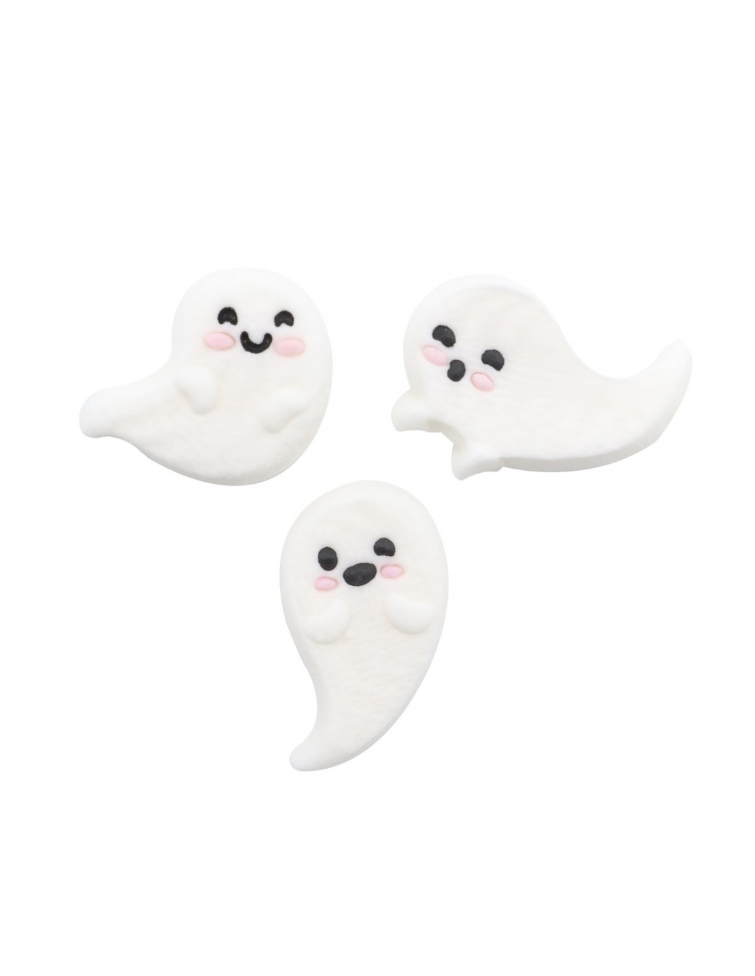 Hecho de pasta de goma comestible, este set contiene 12 fantasmas amigables.