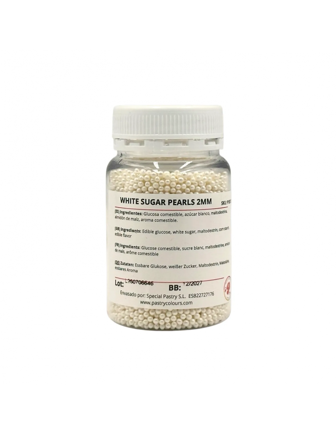 Perlas de azúcar Blancas Nacaradas de 4mm de la marca Pastry Colours.
