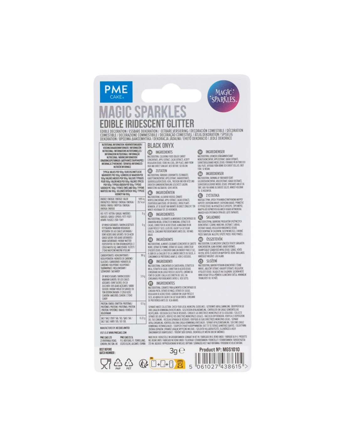 Contiene: 3g de sprinkles con purpurina iridiscente Negro Onix.