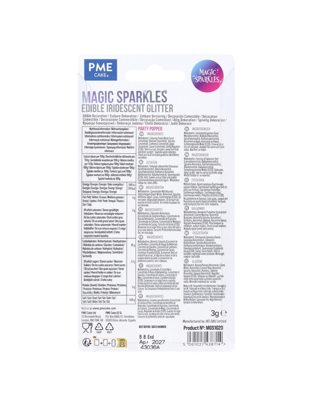 Contiene: 3g de sprinkles con purpurina iridiscente Party Popper.
