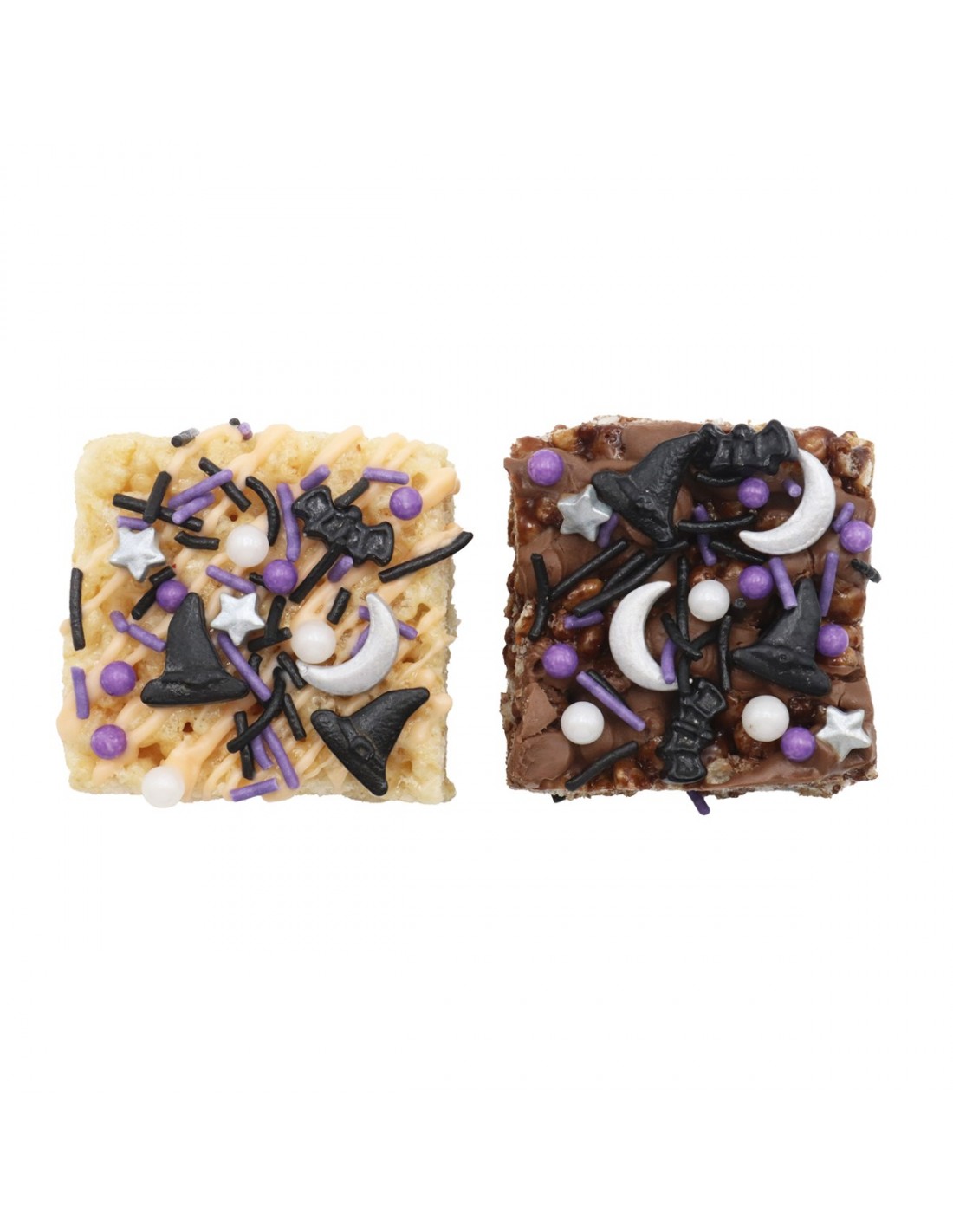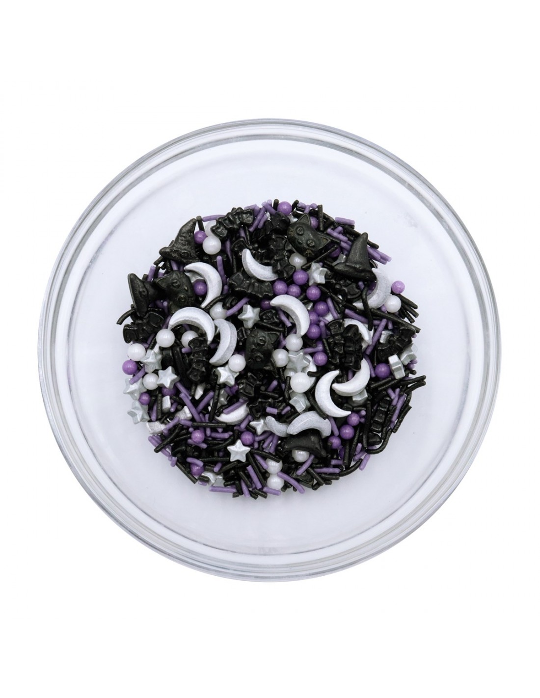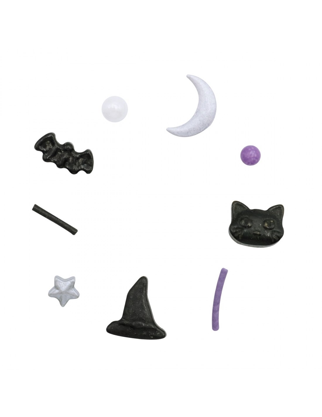Con estos divertidos sprinkles variados conseguirás aportar un toque increíble a tus cupcakes o tartas de Halloween! Las decoraciones de azúcar tienen formas variadas como lunas, gatos negros, fideos, sombreros de bruja, murcielágos...