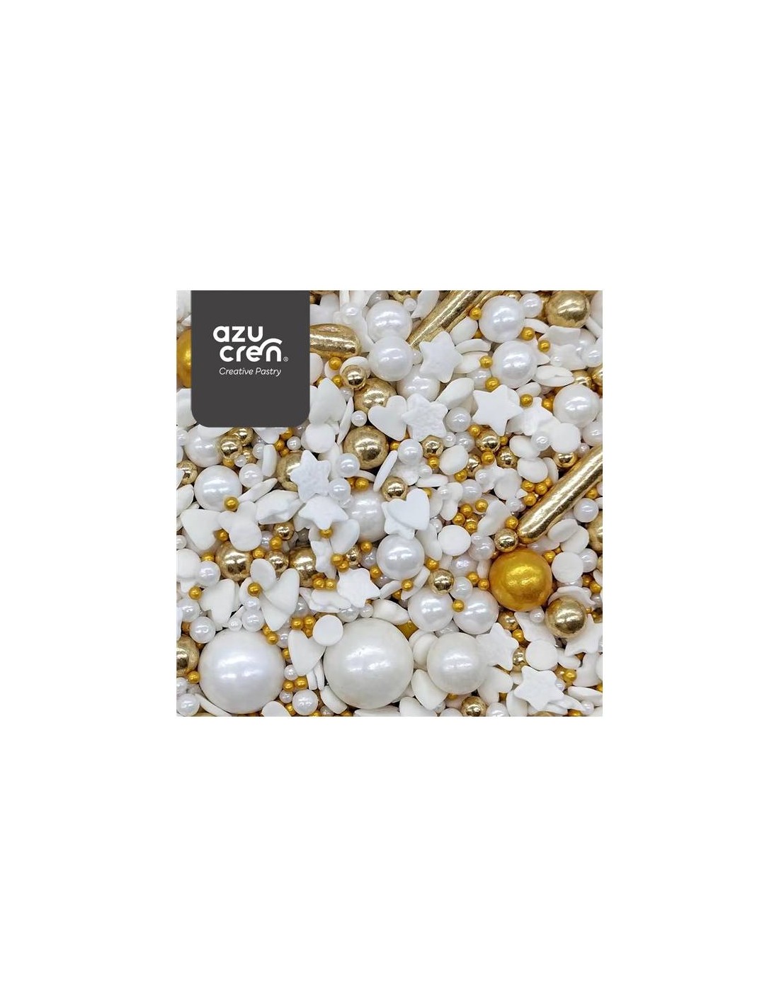 Con estos sprinkles medley Golden Love podrás dar un toque increíble a tus dulces. Las decoraciones de azúcar tienen formas variadas como estrellas, corazones, perlas de diferentes tamaños, palitos xl... en tonos blancos y dorados, la combinación perfecta para decorar tus tartas o cupcakes.