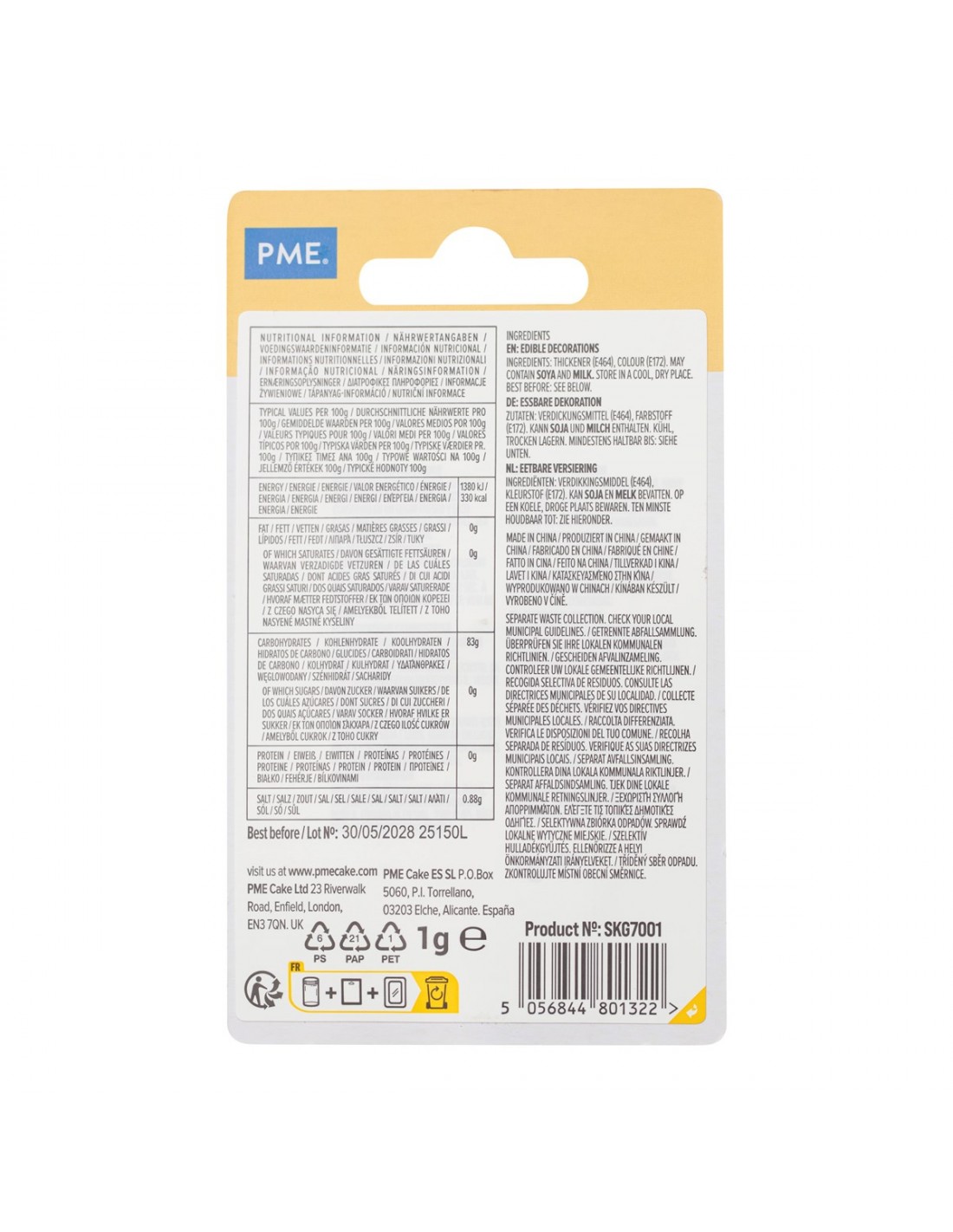 Ingredientes: Espesante (E464), Colorante (E172).