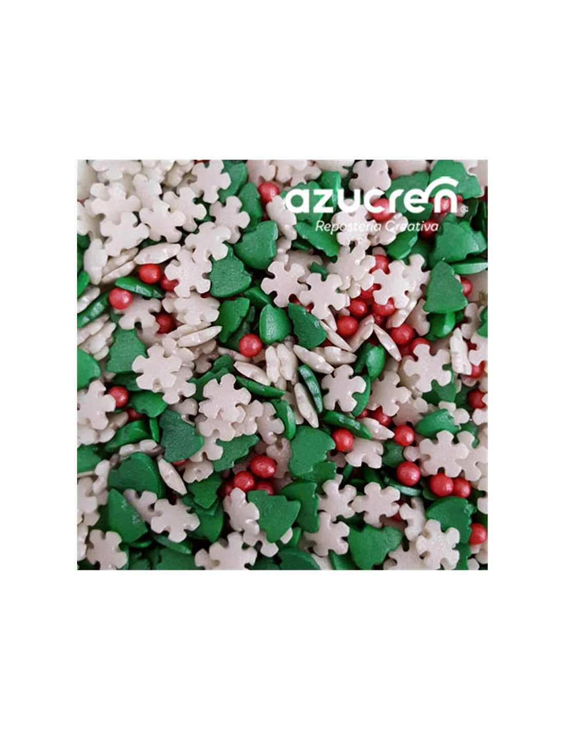 Con estos preciosos sprinkles variados de Navidad en tonos rojo, verde y blanco conseguirás aportar un toque increible a tus cupcakes! Las decoraciones de azúcar son en varios tonos y formas como copos de nieve, bolas, abetos... y son ideales para decorar dulces de Navidad...