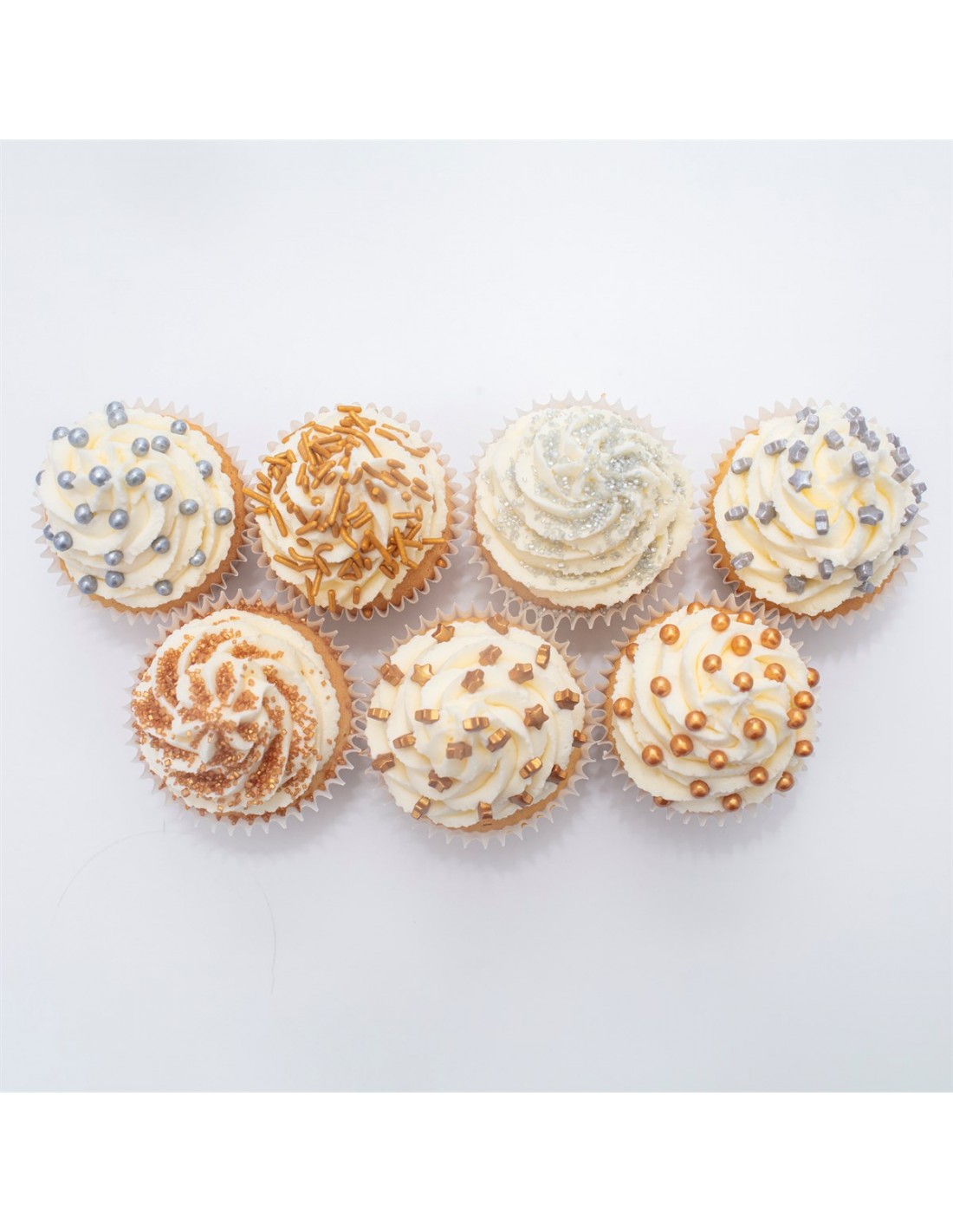 Añadir un acabado ielegante a cupcakes decorados con buttercream.
