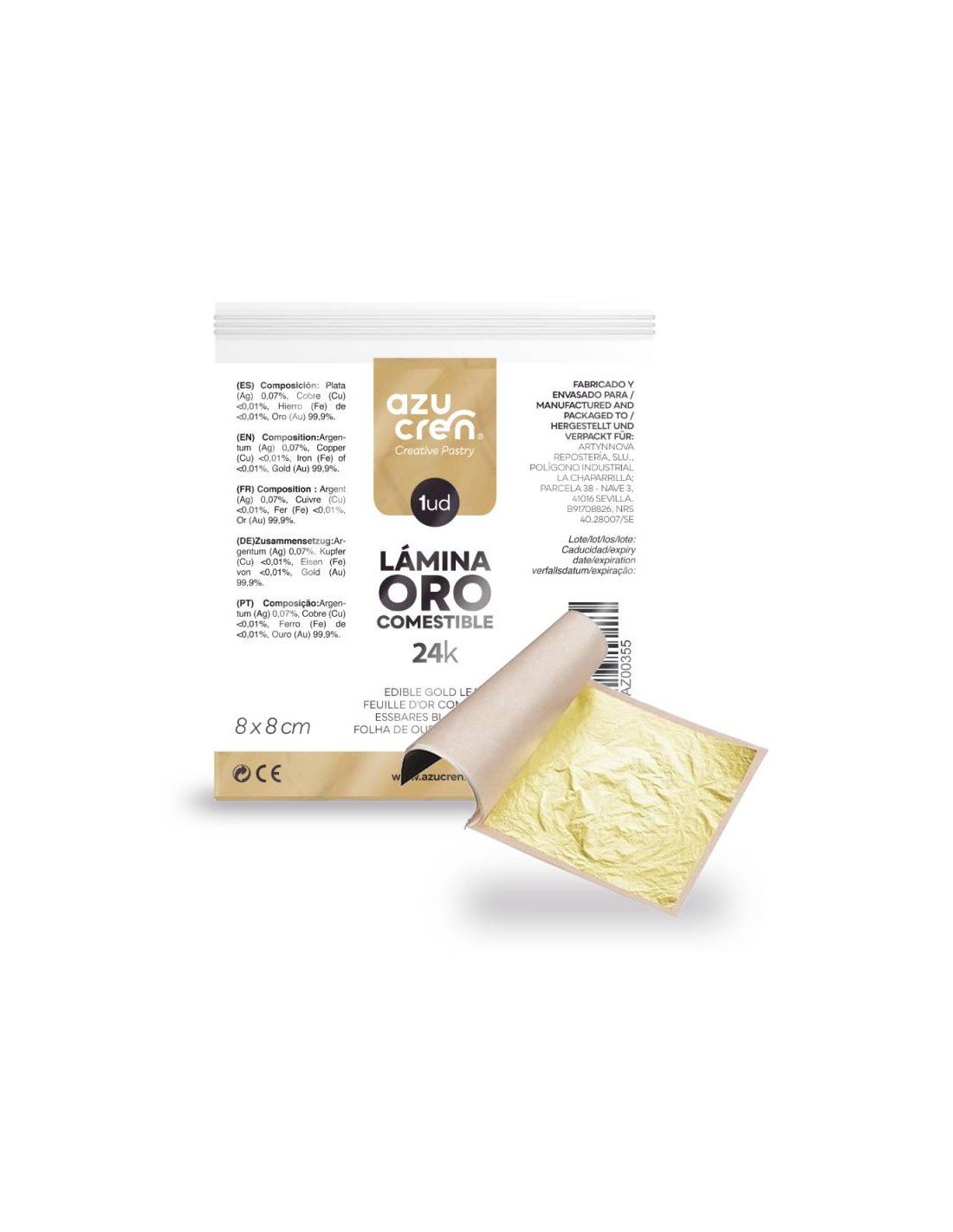 - Presentación: Lámina de oro comestible, empaquetada para mantener su integridad y calidad.