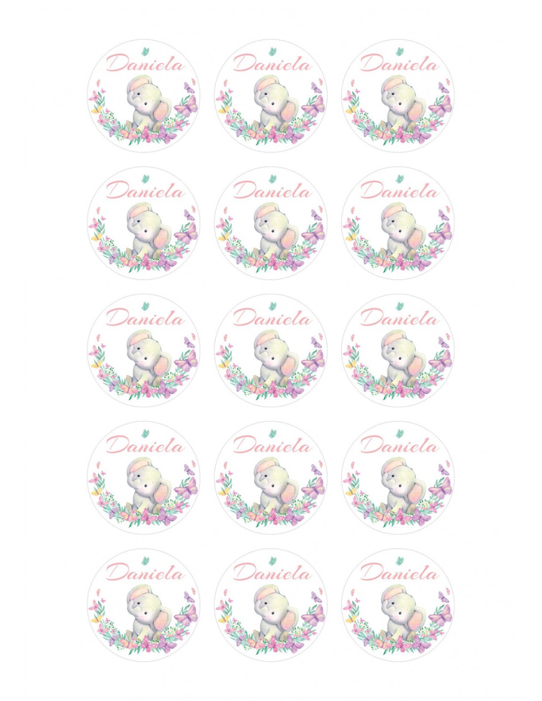 Hoja de papel de azúcar impresas con tinta comestible de elefante floral, para personalizar tartas, cupcakes y galletas.