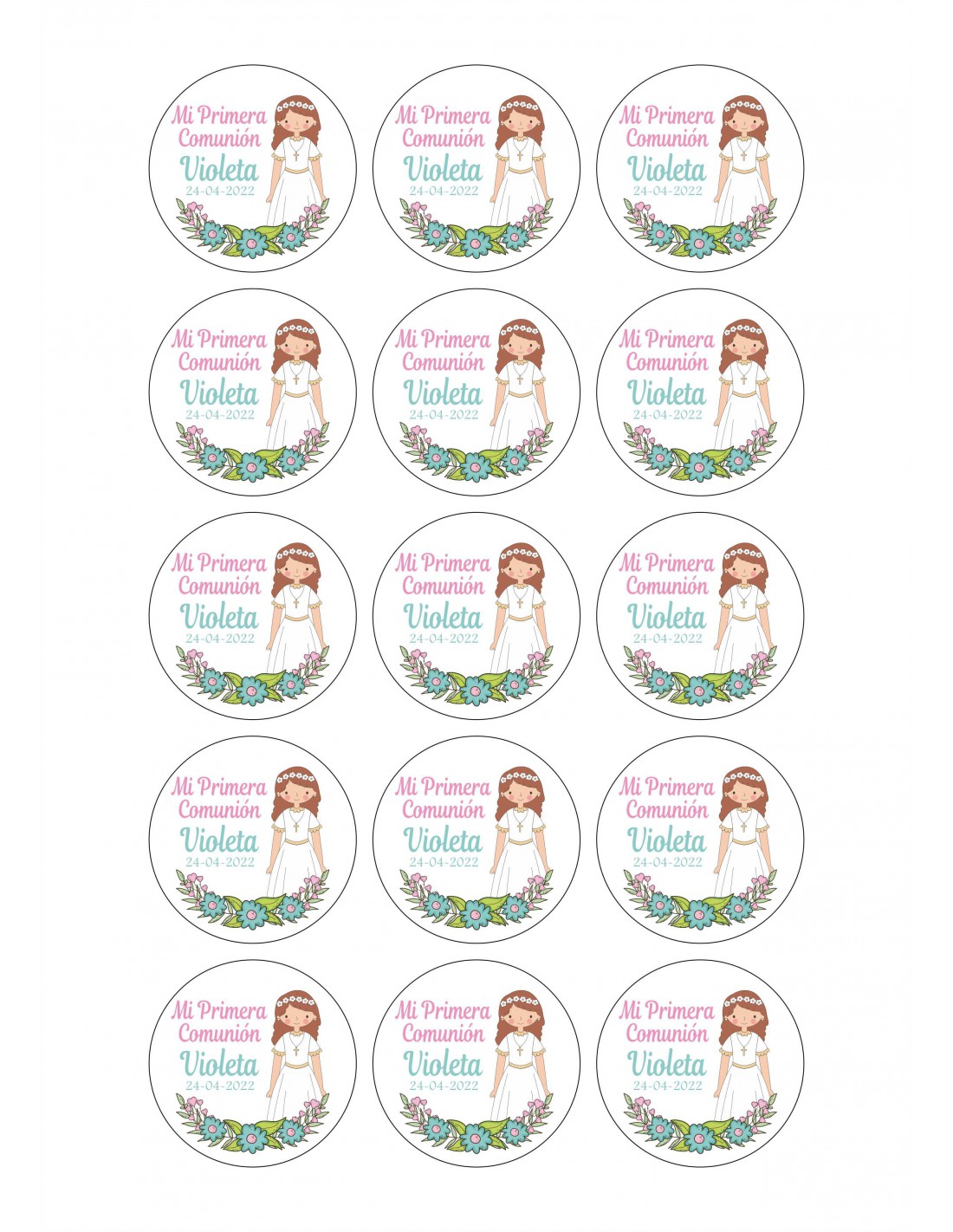 Papel de azúcar comunión niña flores para galletas