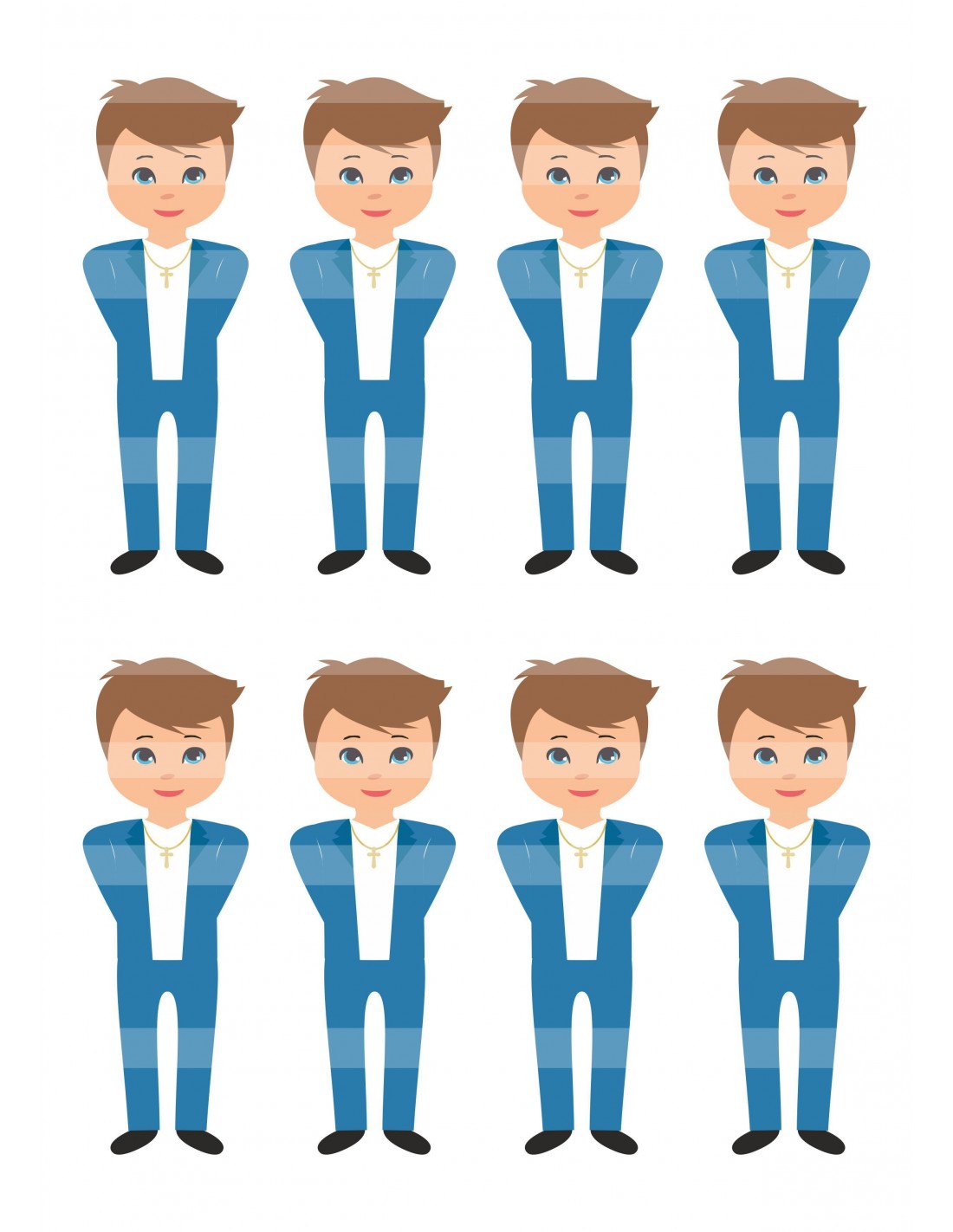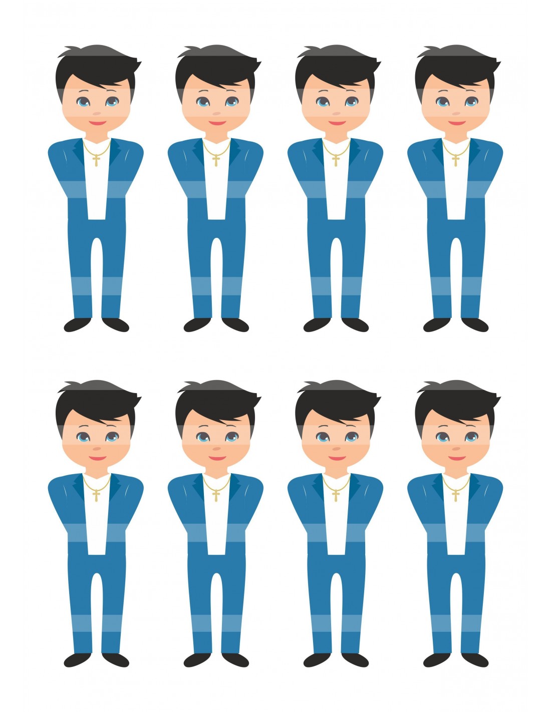 Hojas de papel de azúcar con forma de niño comunión, impresas con tinta comestible para decorar tartas, cupcakes y galletas.
