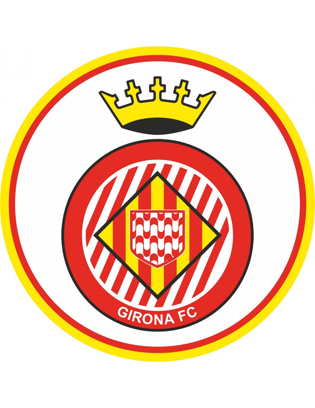 Hoja de papel de azúcar u oblea impresas con tinta comestible para decorar tartas con imágenes del escudo del Girona FC.