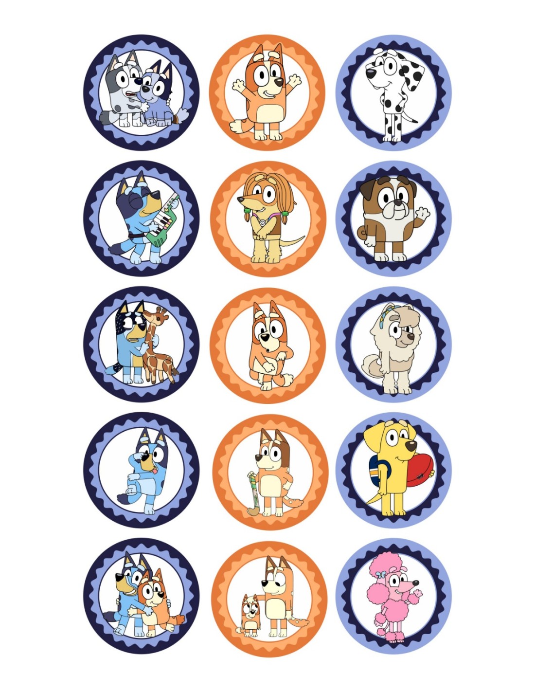 Hoja de papel de azúcar impresa con tinta comestible para decorar tartas, cupcakes y galletas con divertidos dibujos de Bluey. Dale un toque original a tus galletas.