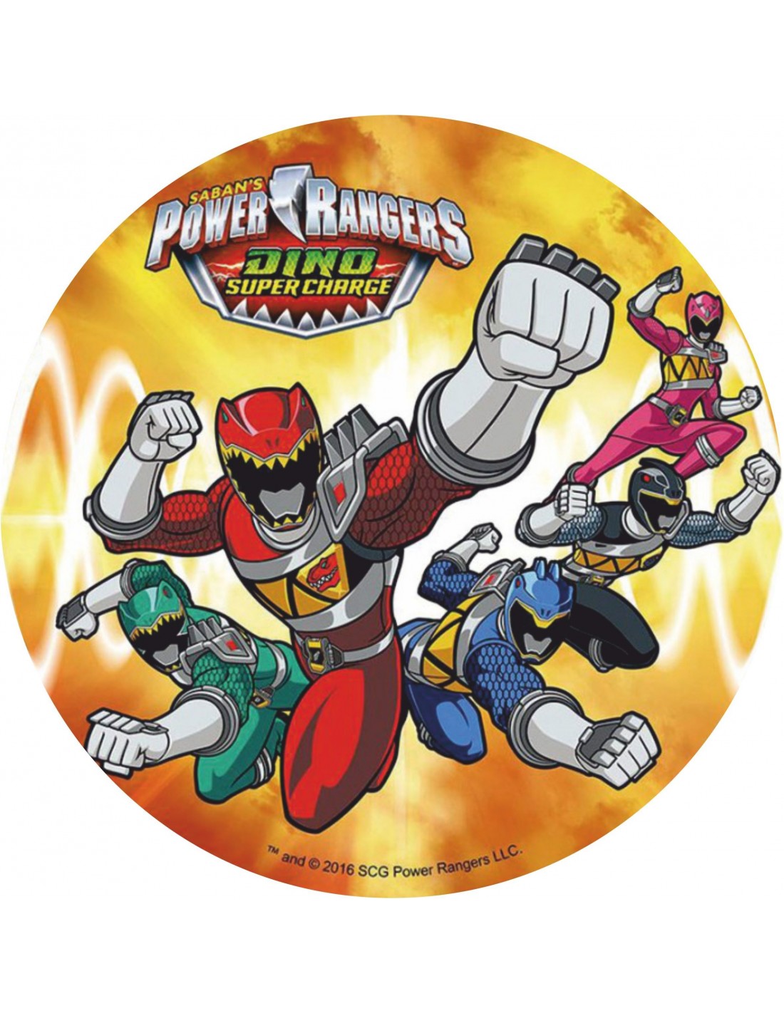 Hoja de papel de azúcar para personalizar tartas impresa con tinta comestible con imágenes de los Power Rangers.